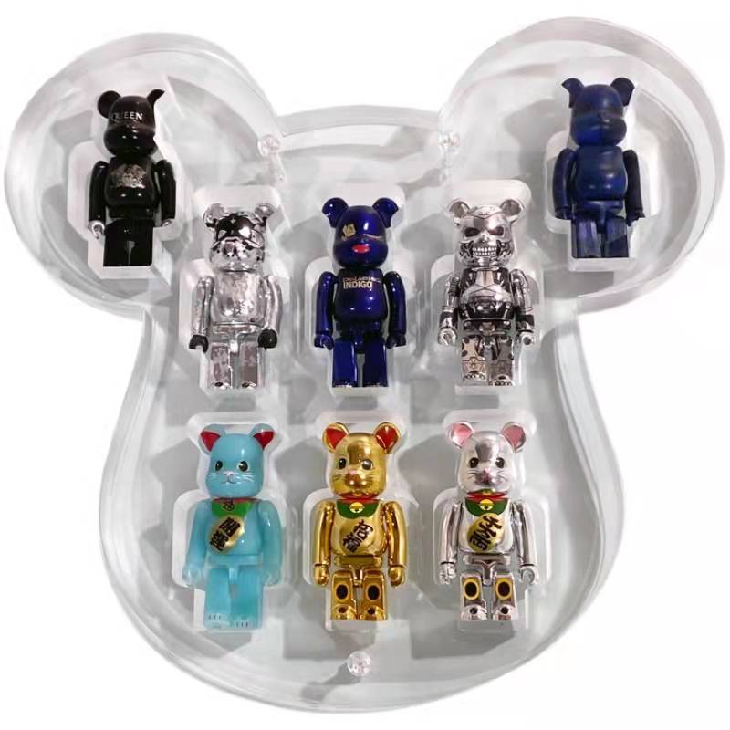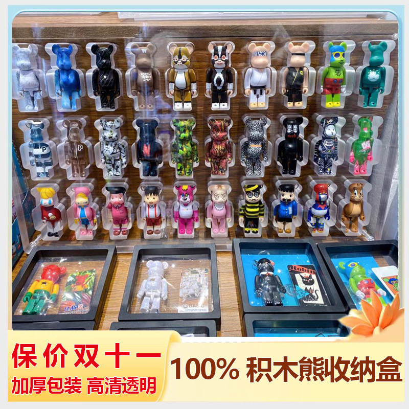 Bearbrick100%透明展示盒展示板收纳盒积木熊防尘盒桌面B熊保护盒