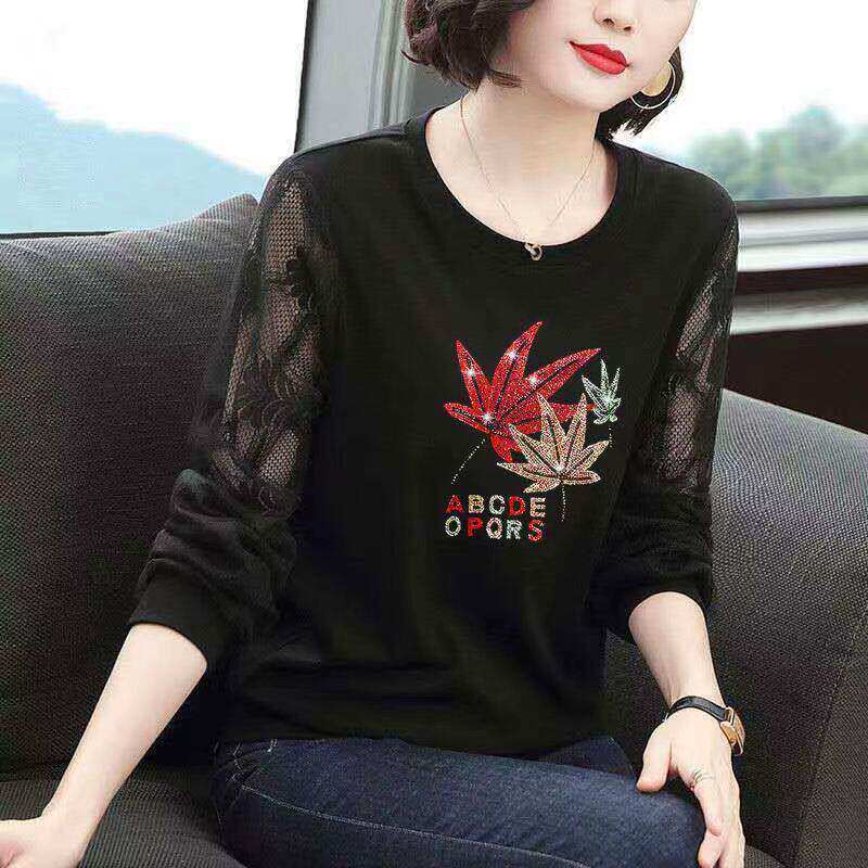 大码中年妈妈装内搭长袖t恤女士蕾丝洋气打底衫2026新款春装上衣