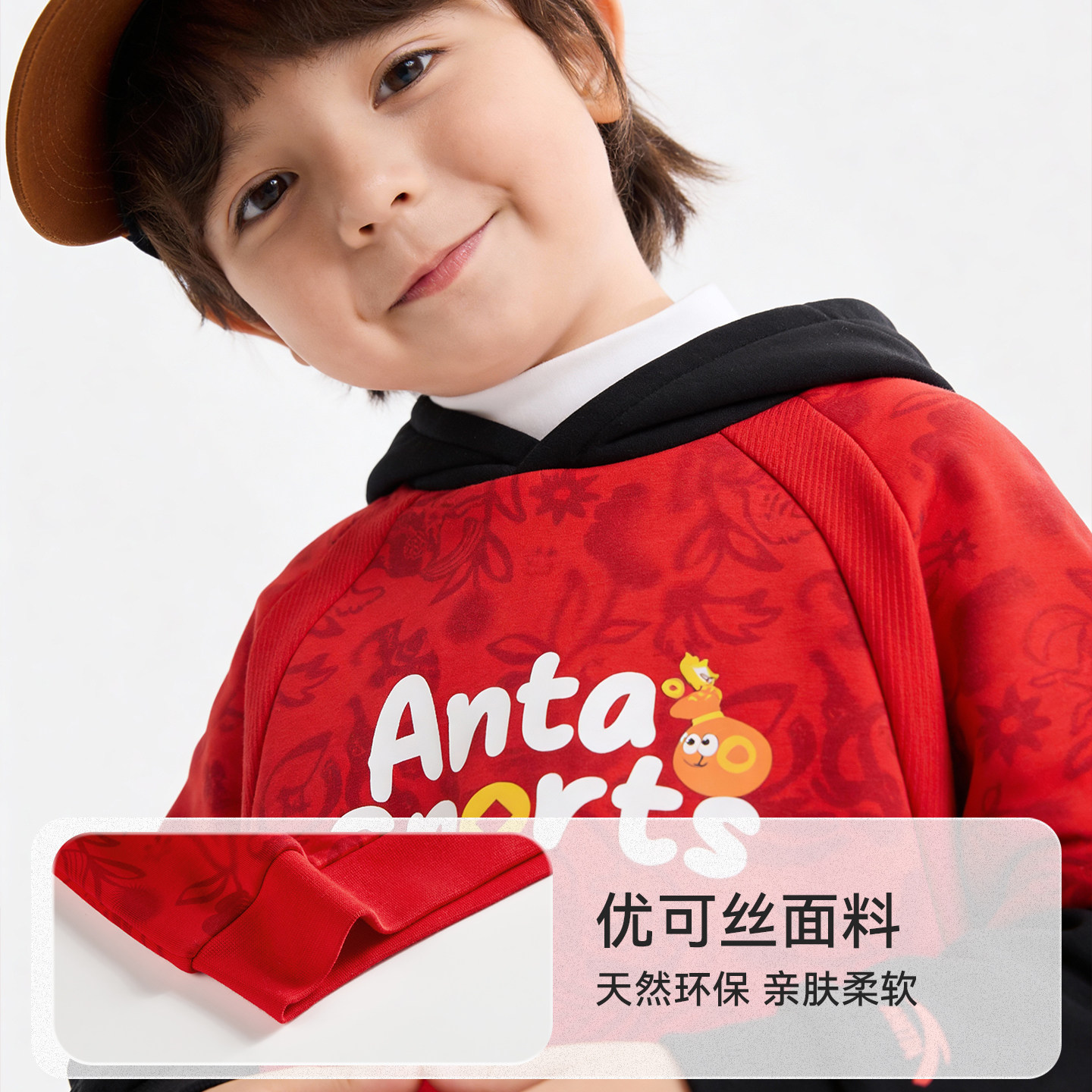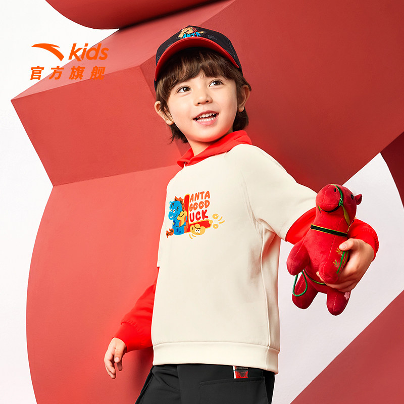 【新年马年】安踏儿童卫衣宝宝男小童连帽上衣2026年春新男孩卫衣