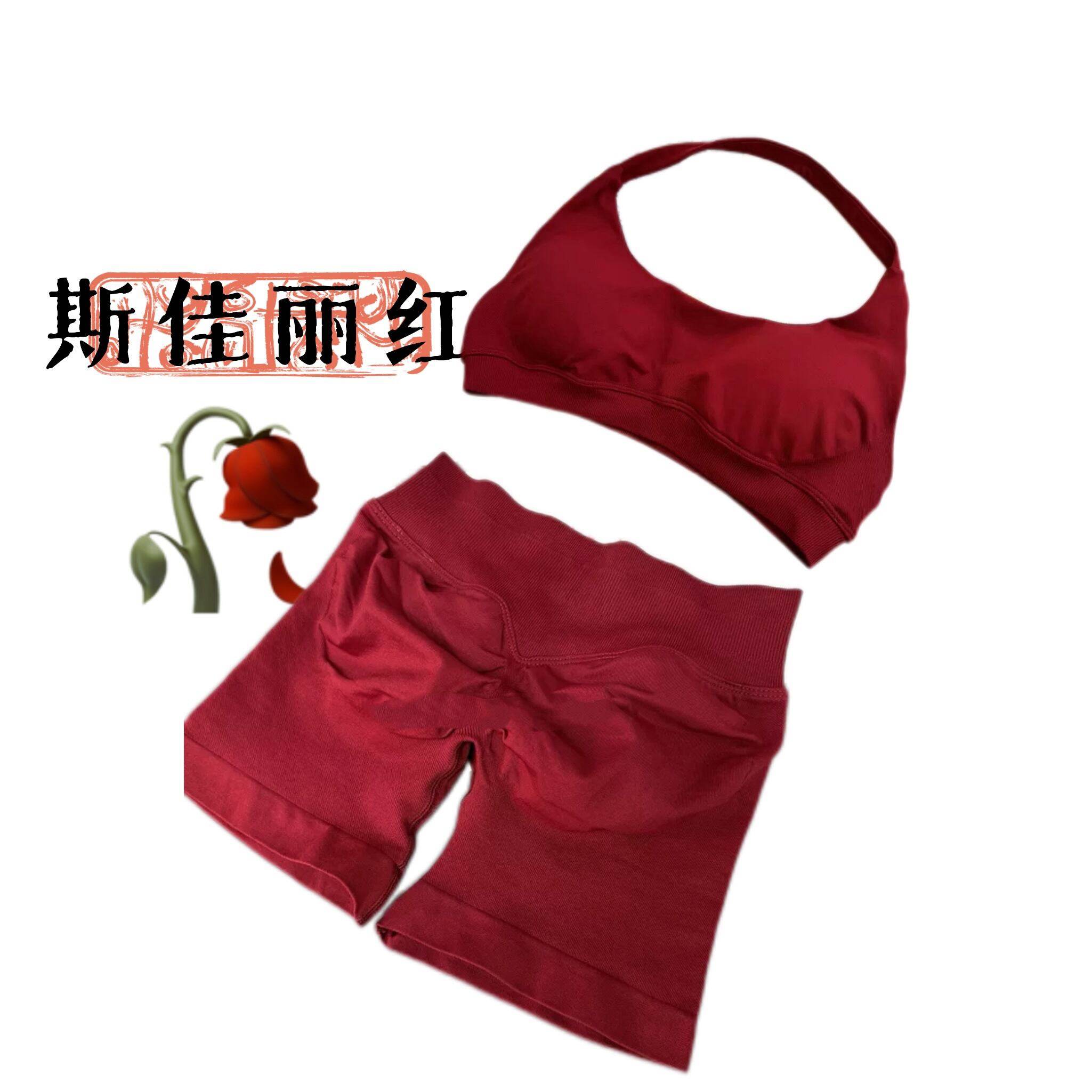 欧美风时尚翘臀短裤瑜伽套装挂脖美背运动背心训练蜜桃健身服女