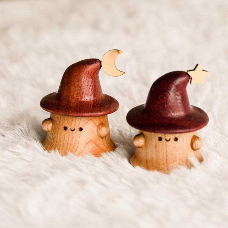 魔法迷你小精灵实木可爱创意摆件车载居家装饰品治愈系创意礼物