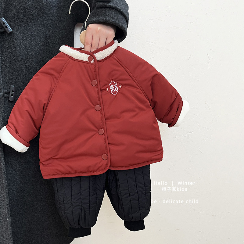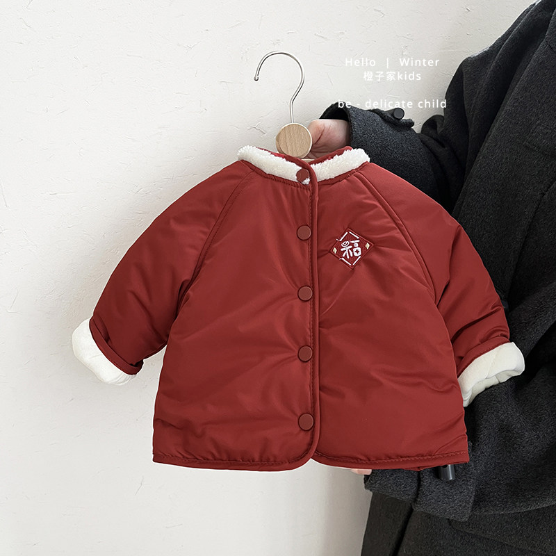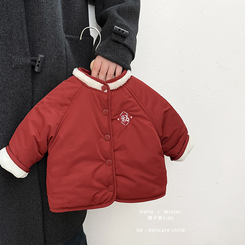男童新年拜年服洋气女宝宝红色喜庆周岁夹棉外套婴儿加厚保暖棉袄
