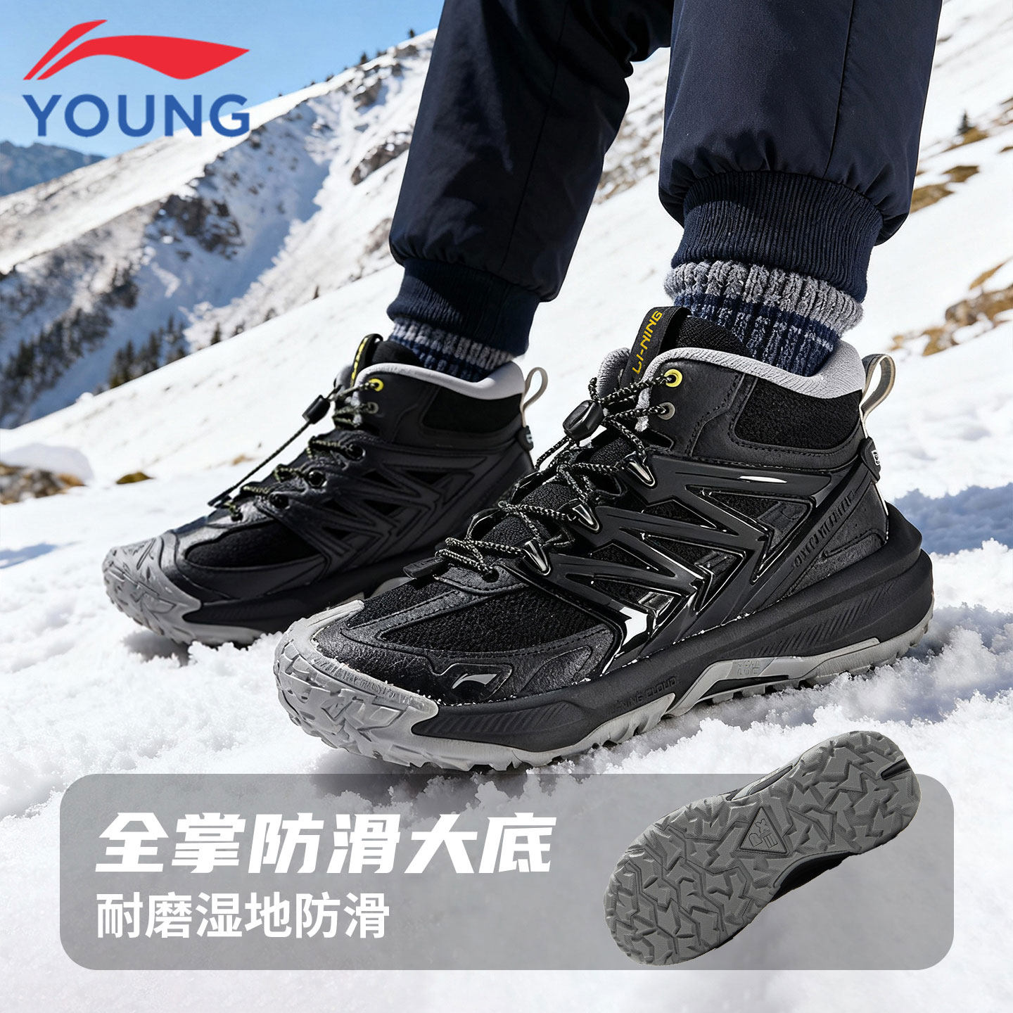 李宁童鞋儿童户外鞋男童冬季新款青少年中帮防滑耐磨登山鞋徒步鞋
