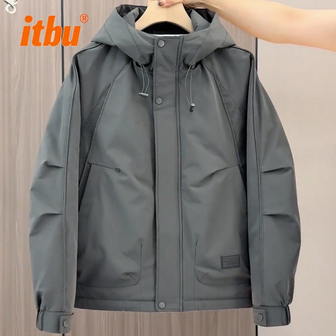 拼接连帽冲锋衣男外套男士秋冬季2025新款工装夹克棉衣服男款冬装