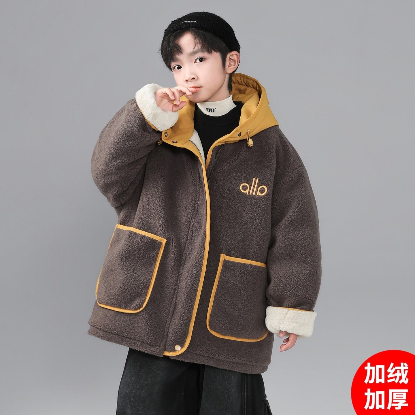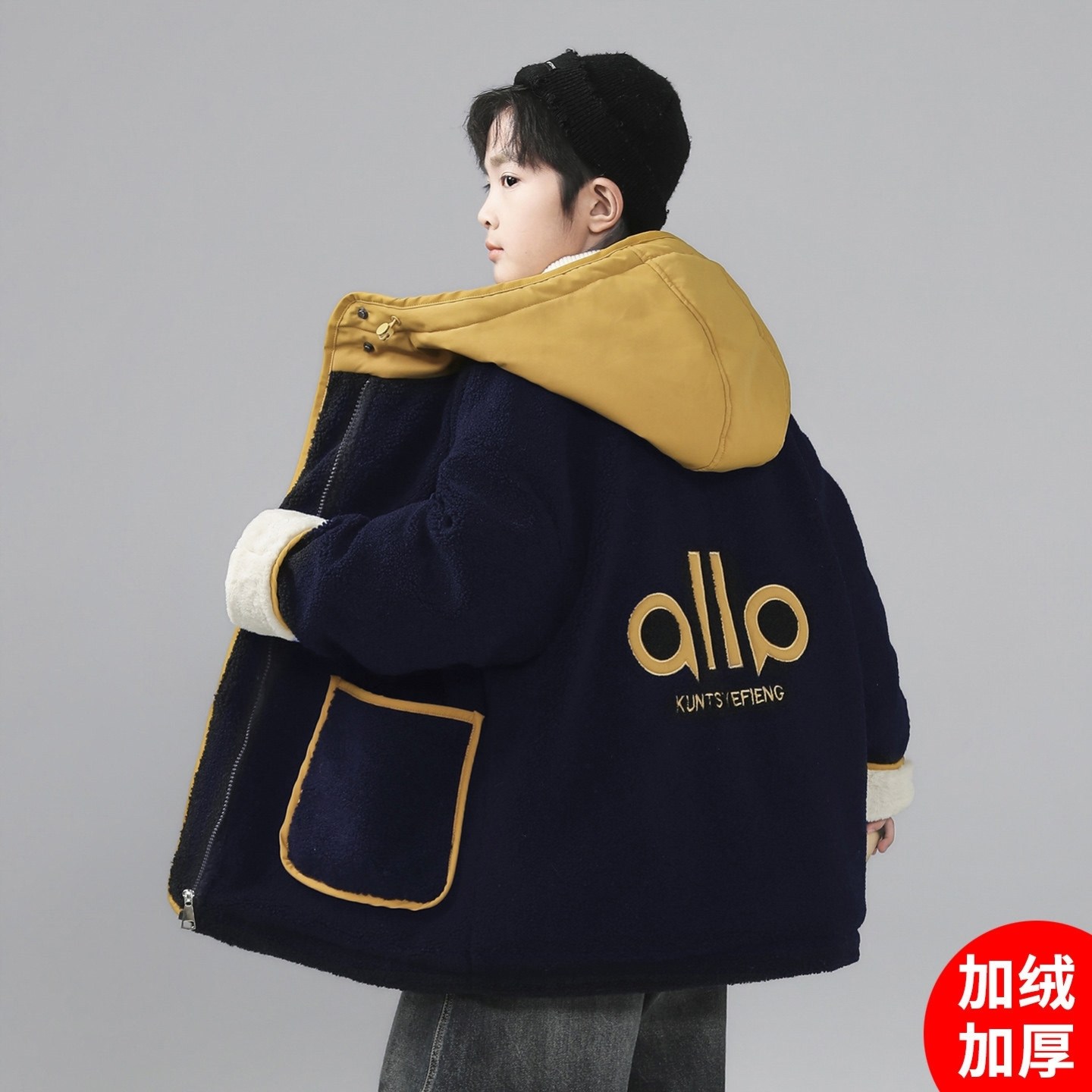 男童棉袄帅夹棉加绒新款春秋季网红炸街棉衣外套年服秋冬季潮酷