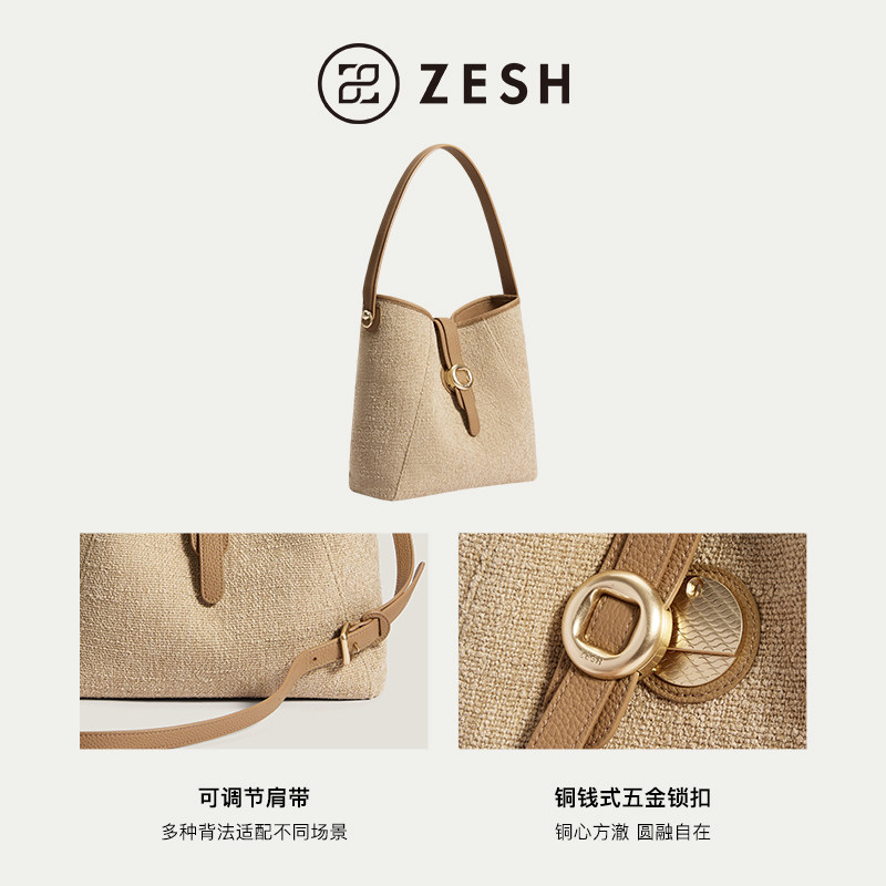 ZESH/泽尚 铜钱hobo包托特包单肩包大容量包包女款斜挎包通勤新款