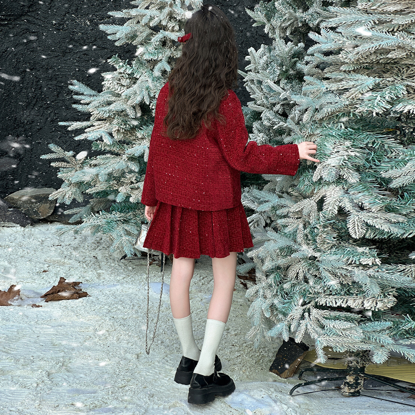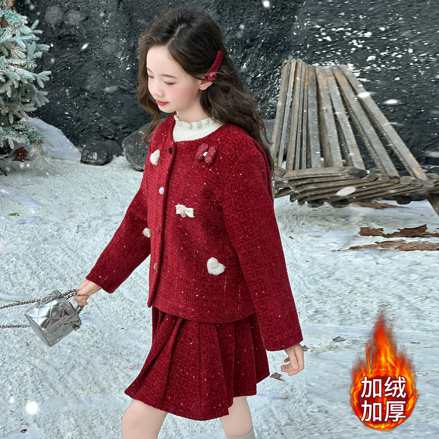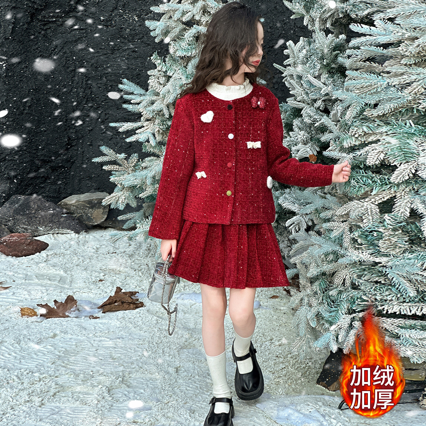 女童加绒套装裙子两件套初中生女孩冬装2025新款加厚儿童衣服大童