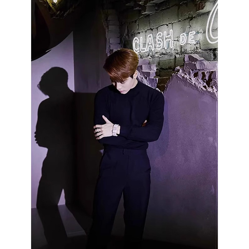 311线报网描述:王嘉尔同款毛衣男款春秋季半高领内搭打底衫