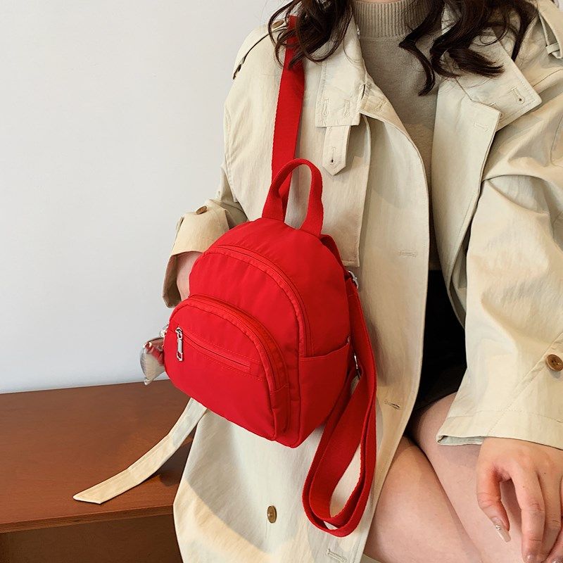 花曦家新品 双肩包女轻便红色小型女款包包大学生书包迷你小背包
