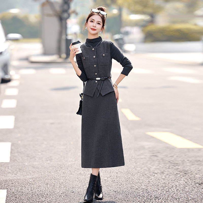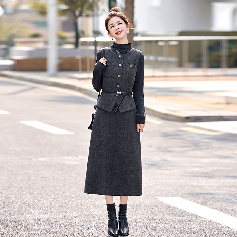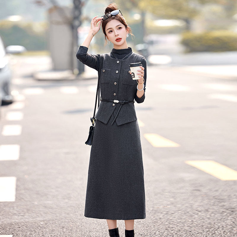假三件马甲两件套裙春装搭配一整套高级感轻奢女装2026超火连衣裙