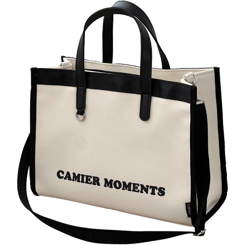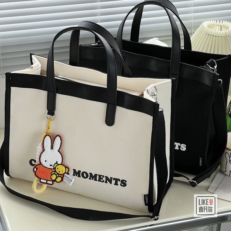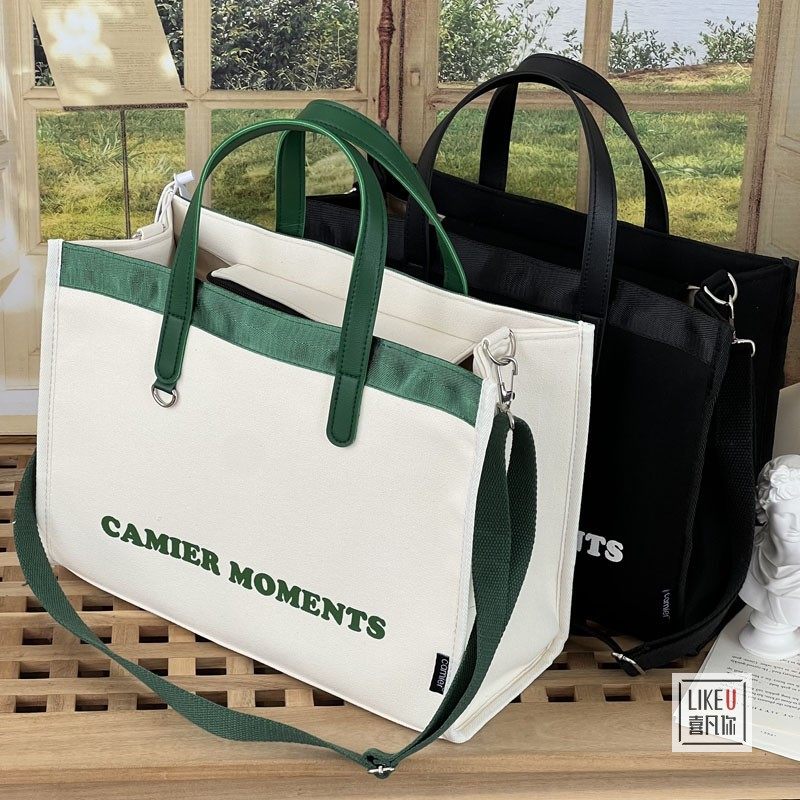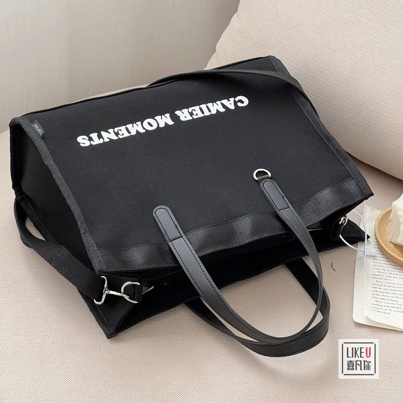 原创设计有型加厚拉链大容量帆布托特包大学生电脑手提单肩斜挎包