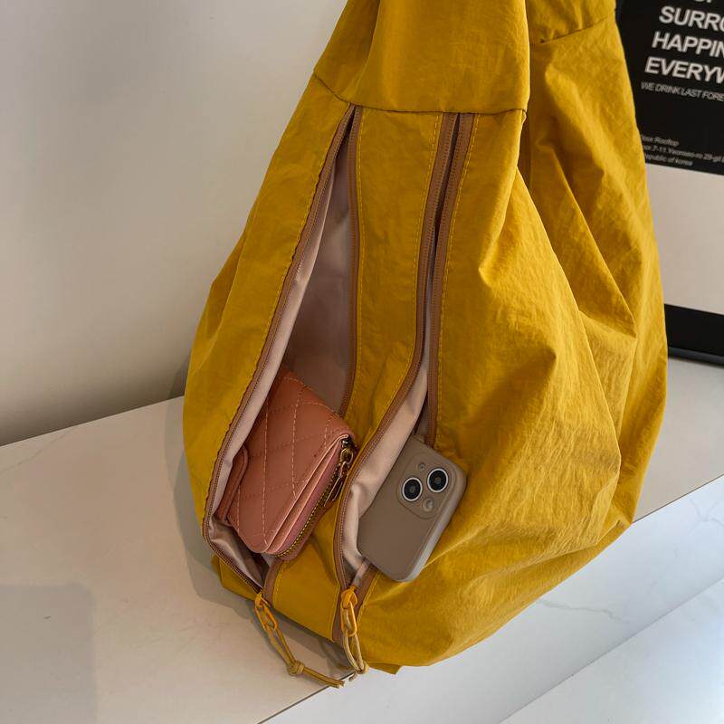 黄色帆布包女大容量单肩购物袋慵懒风拉链2025新款上班通勤托特包