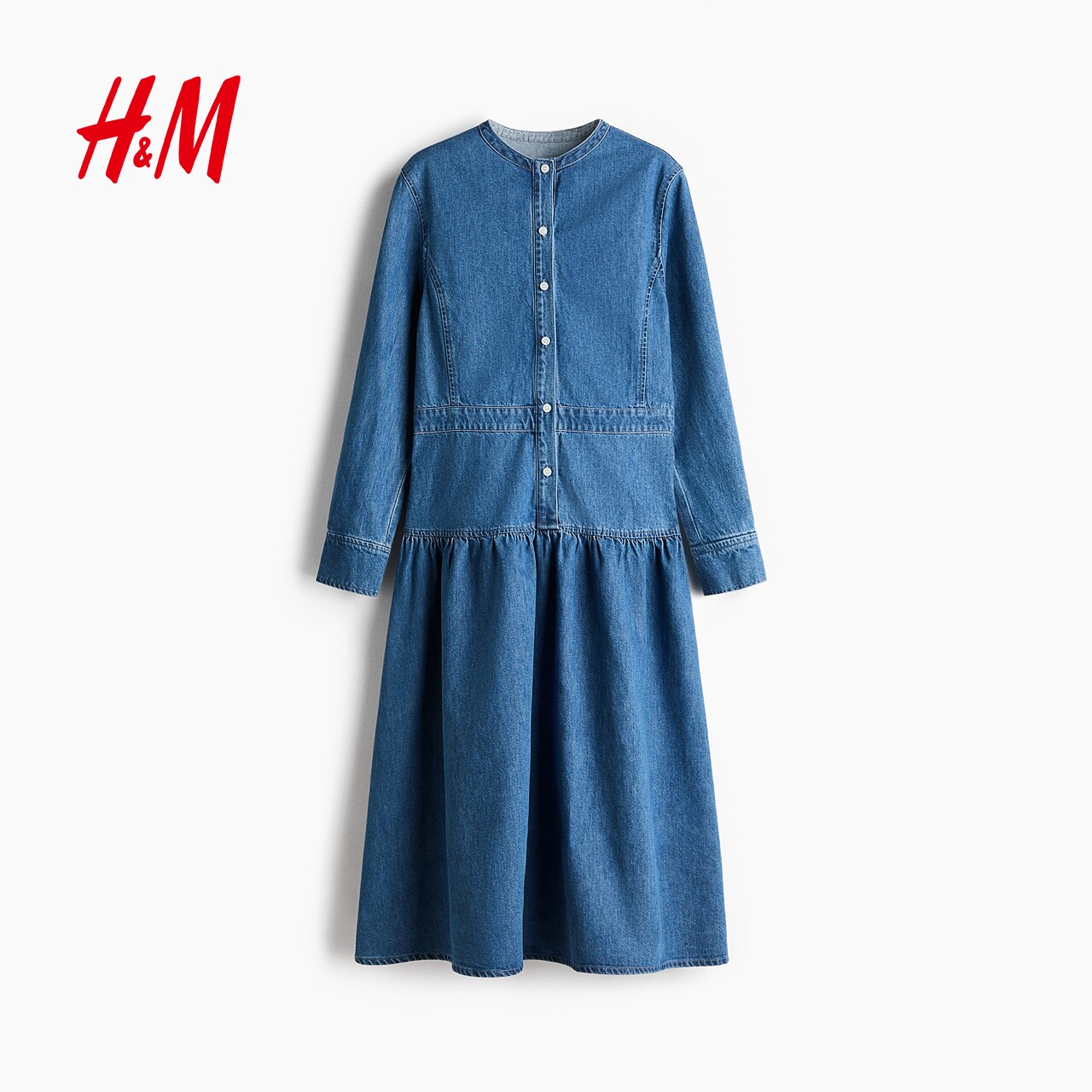 HM2026春季新款女装牛仔中长连衣裙1326979