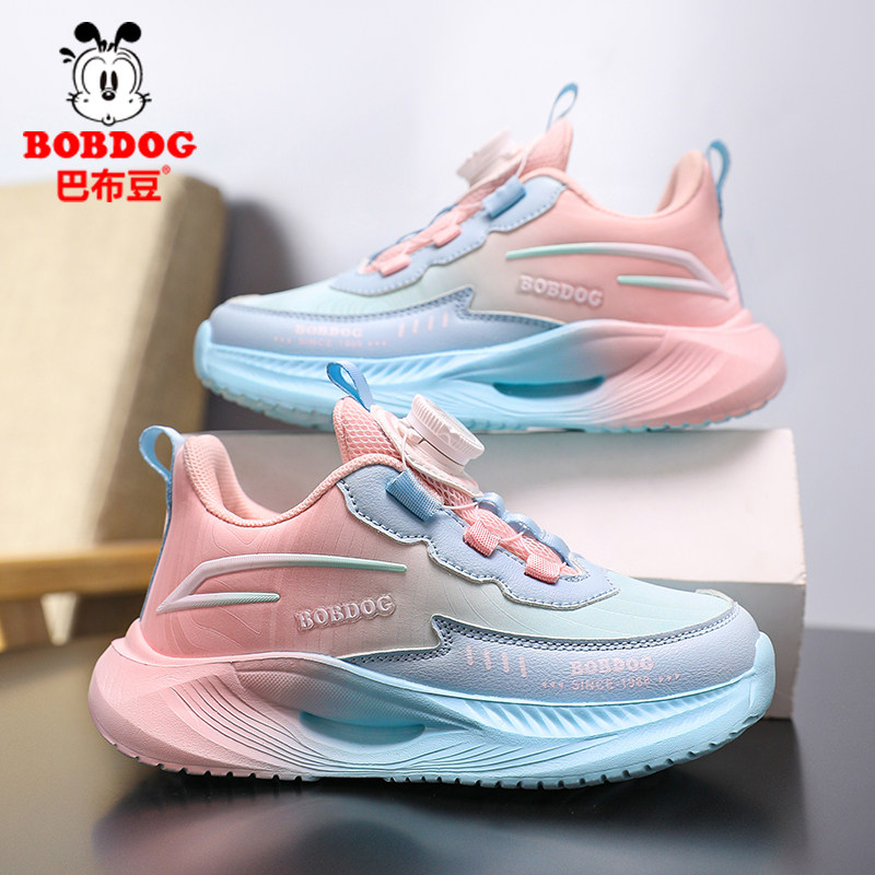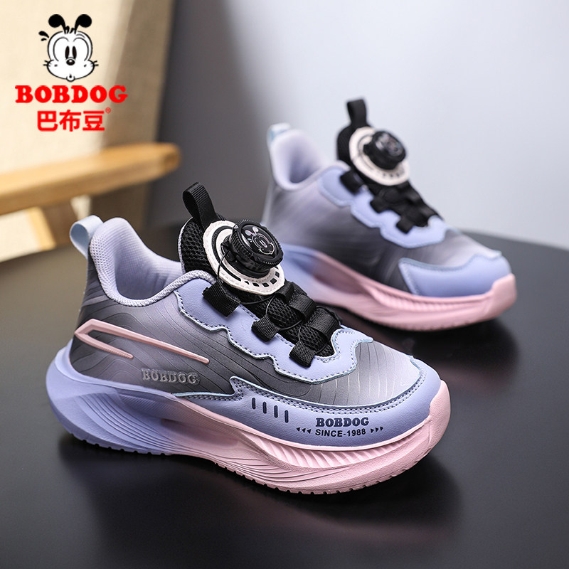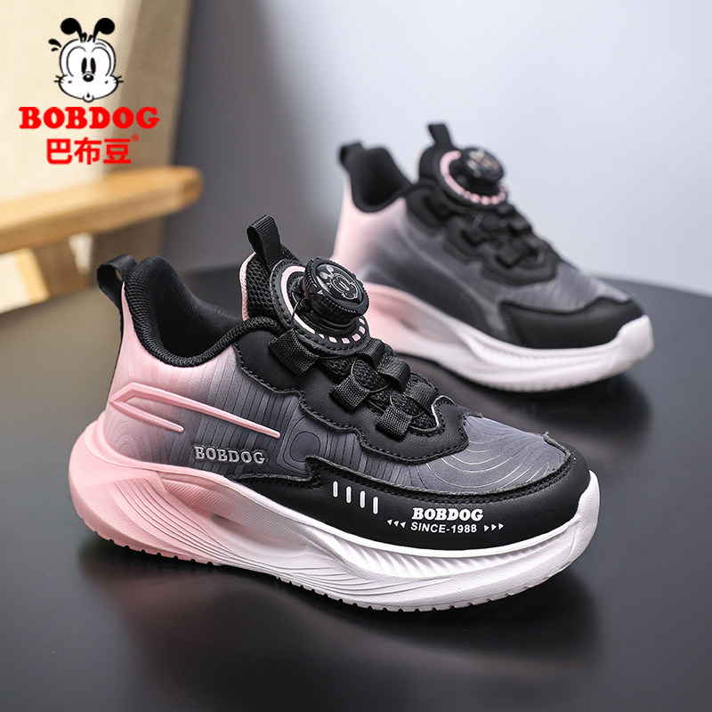 巴布豆童鞋女童运动鞋2025秋冬季新款皮面防水儿童旋转扣跑步鞋子