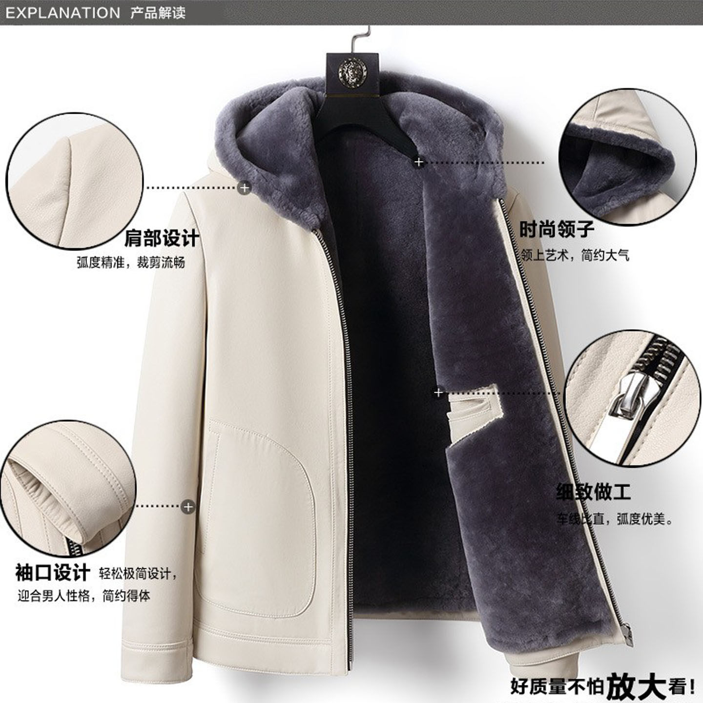 海宁新款羊皮毛一体真皮男皮衣连帽绵羊皮冬装羊羔毛加绒加厚外套