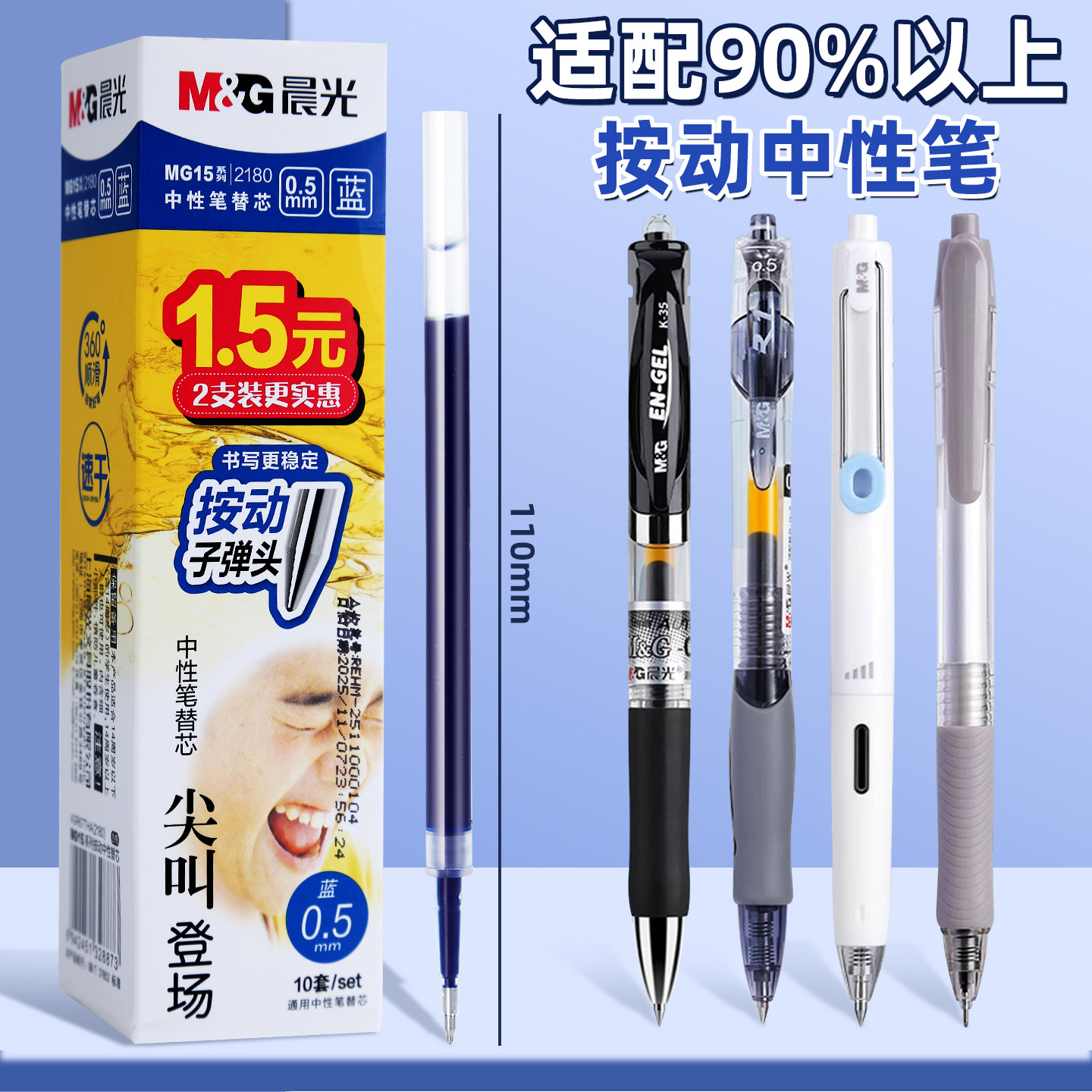 311线报网描述:晨光通用蓝色按动笔笔芯