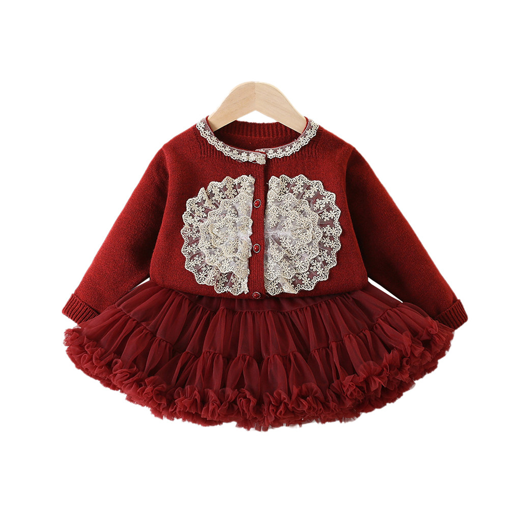 周岁女宝礼服1女童冬季连衣裙套装2婴儿新年毛衣红色tutu裙公主裙