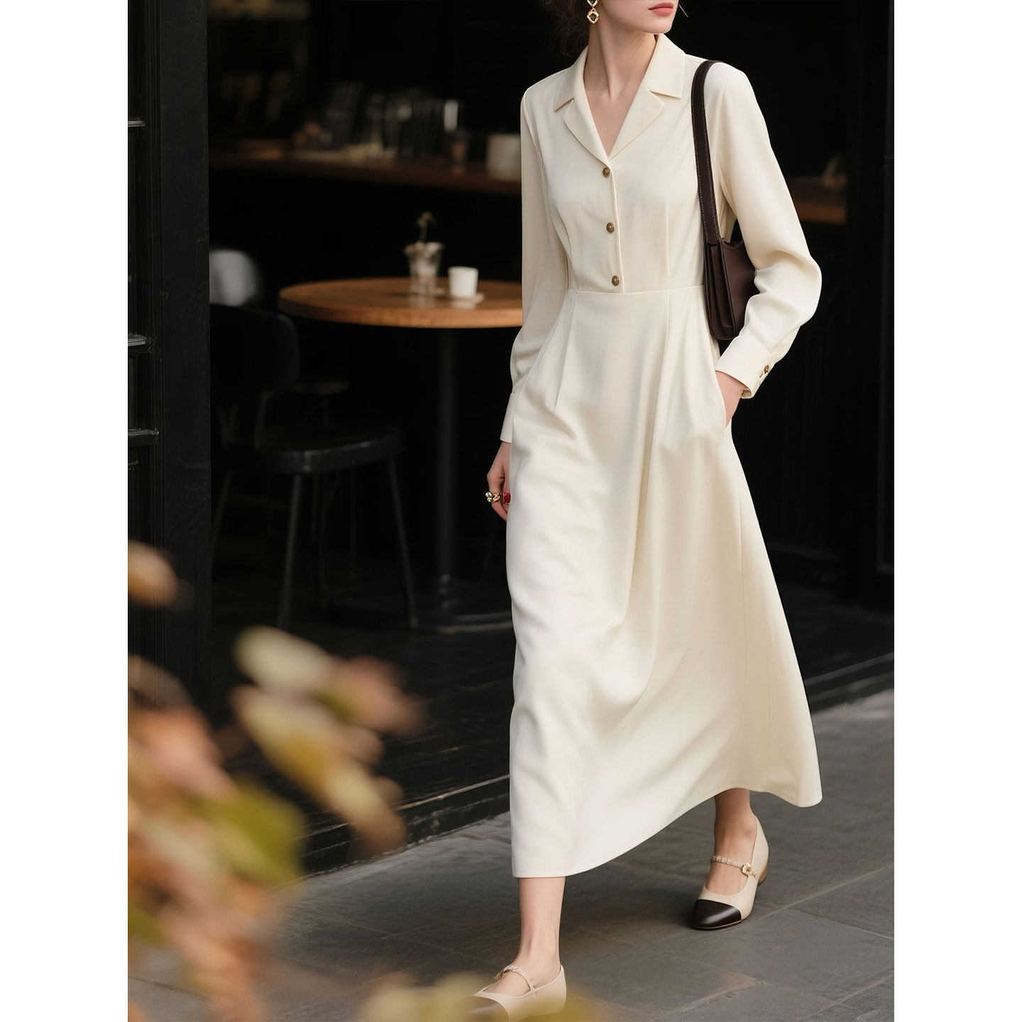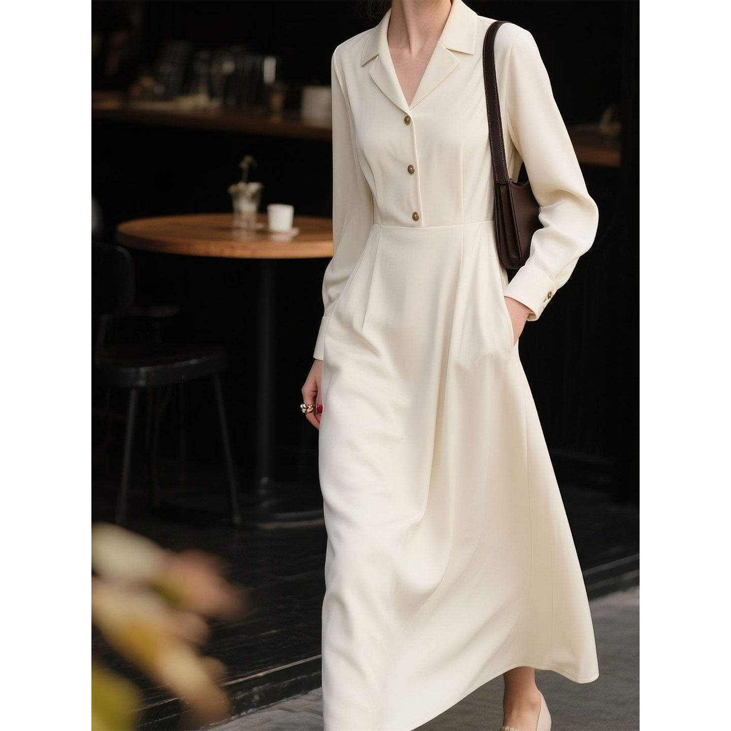 白色长袖连衣裙女2026年春季新款正式场合巨好看的早秋穿搭裙子