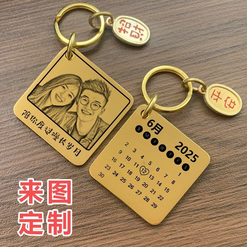520照片定制钥匙扣diy情侣创意挂件纪念日历生日礼物送男女朋友