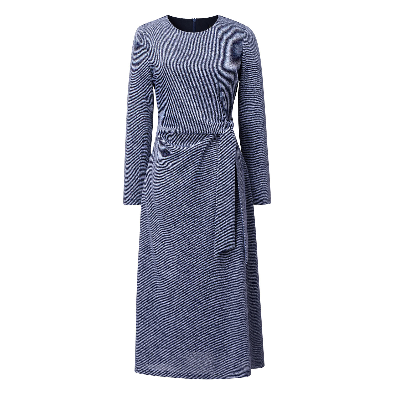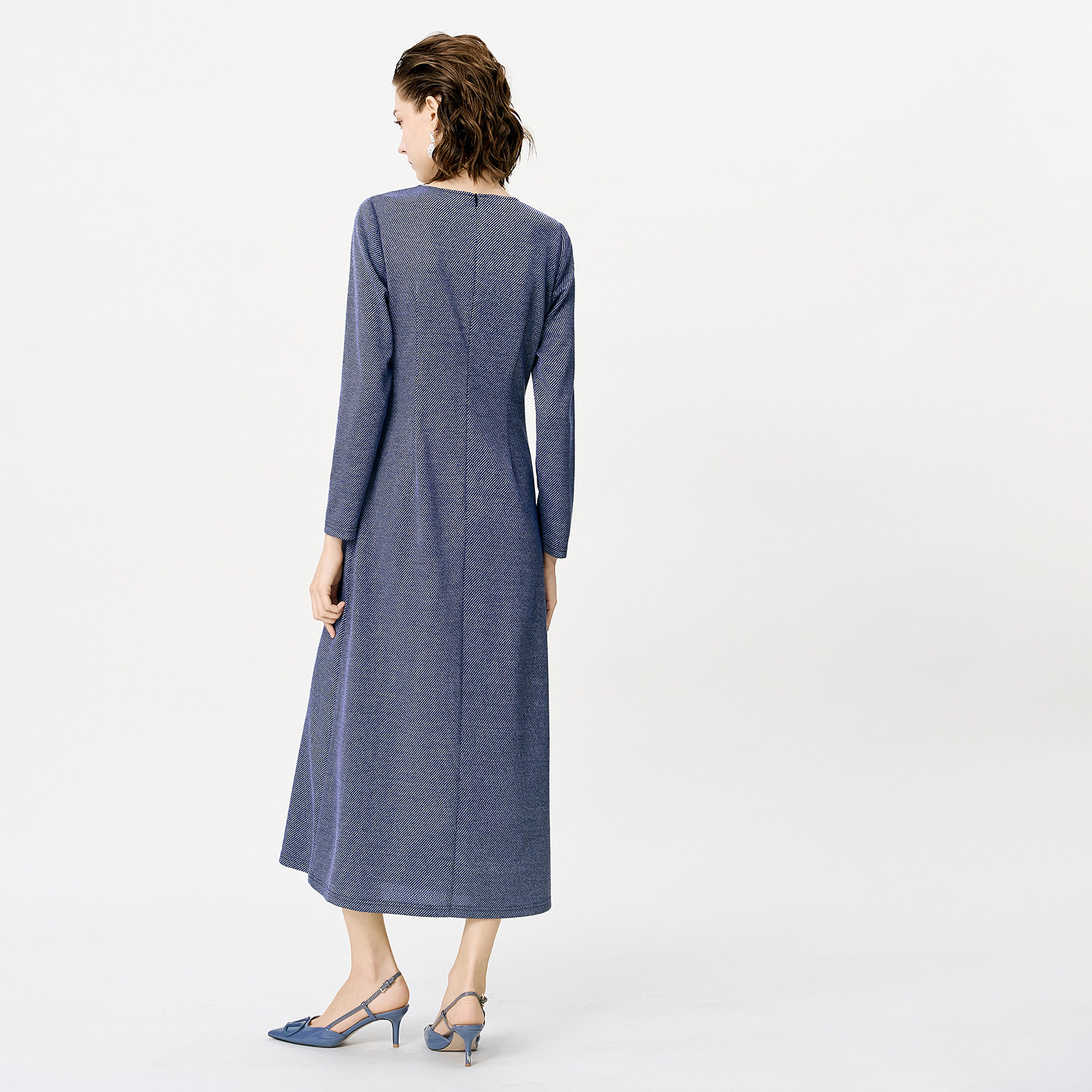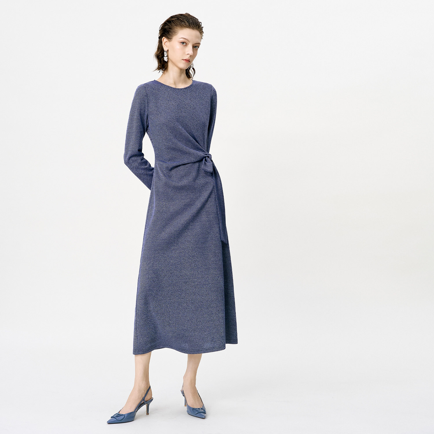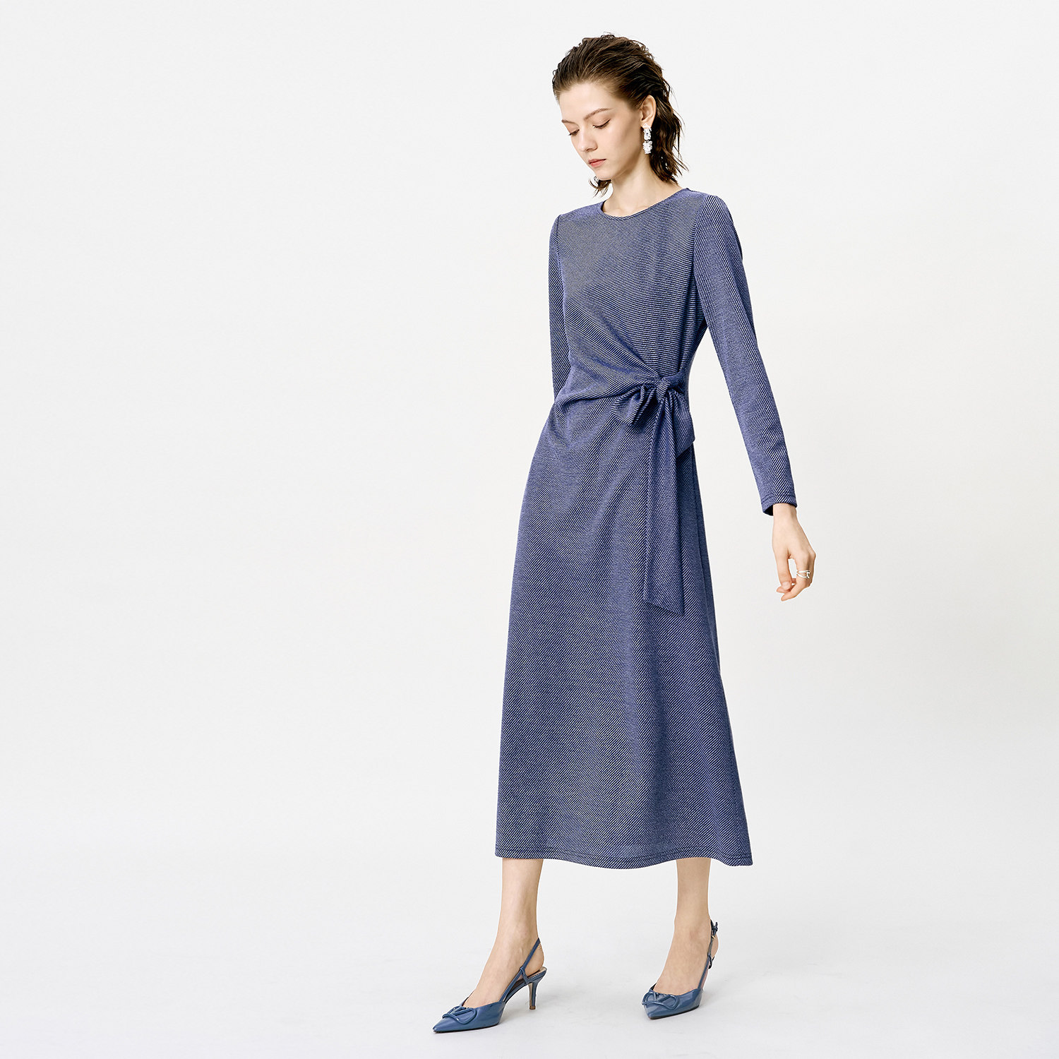 颜域设计感掐腰连衣裙女2026新款春装高级感长袖过膝显瘦气质长裙