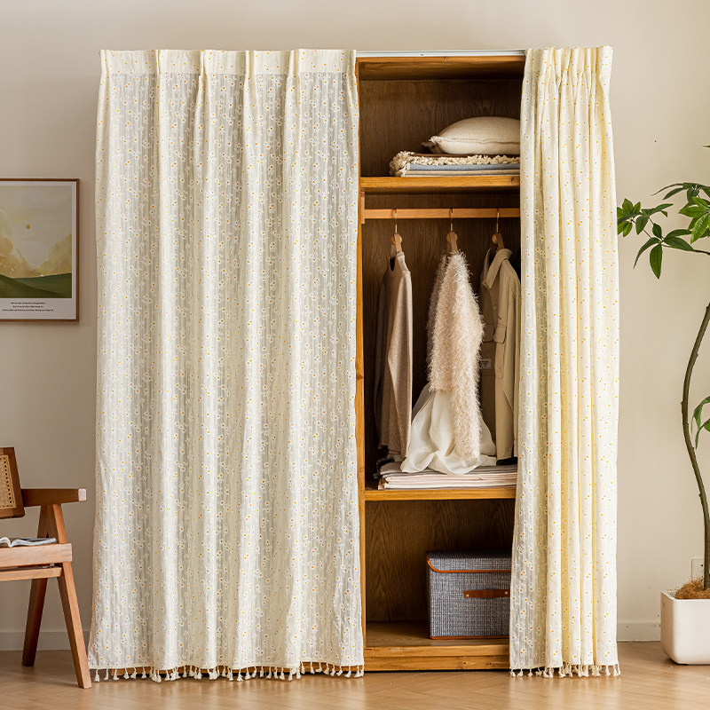 柜子遮挡帘衣柜门帘防尘帘免打孔滑轨道置物架橱柜帘装饰美观纱帘
