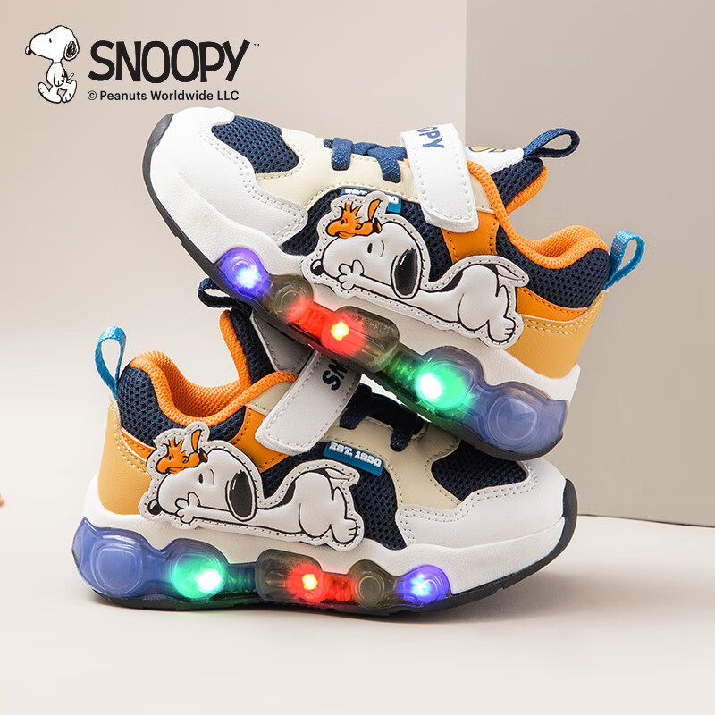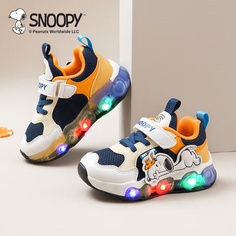 史努比童鞋男童亮灯运动鞋中小童秋季新款宝宝轻盈缓震休闲跑步鞋