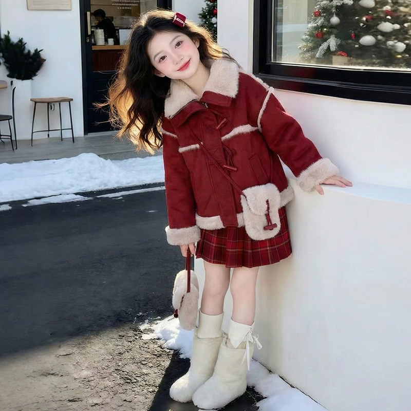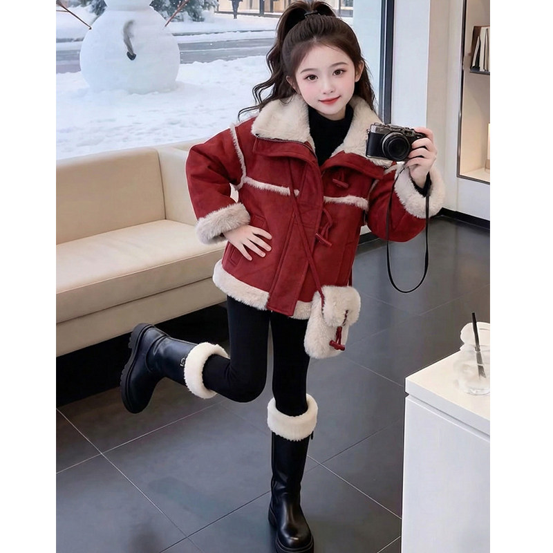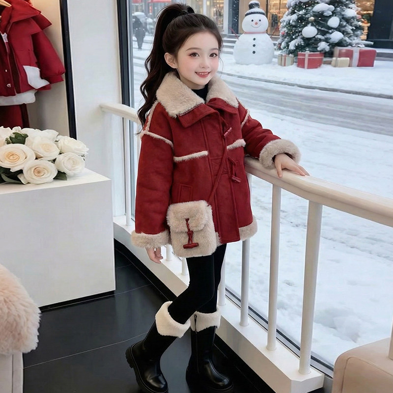 女童冬装外套2026新款洋气儿童加厚麂皮红色过年服小女孩冬季衣服