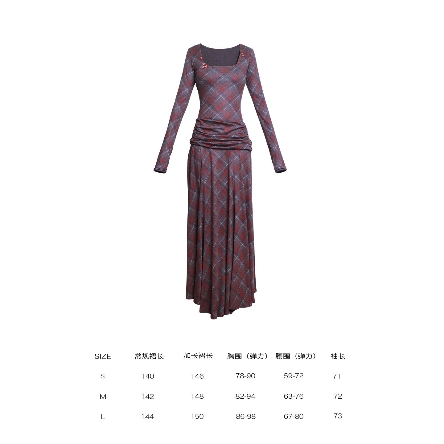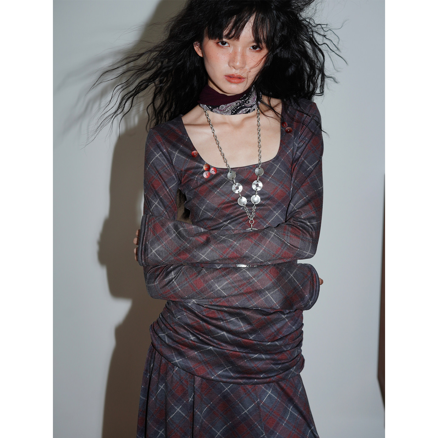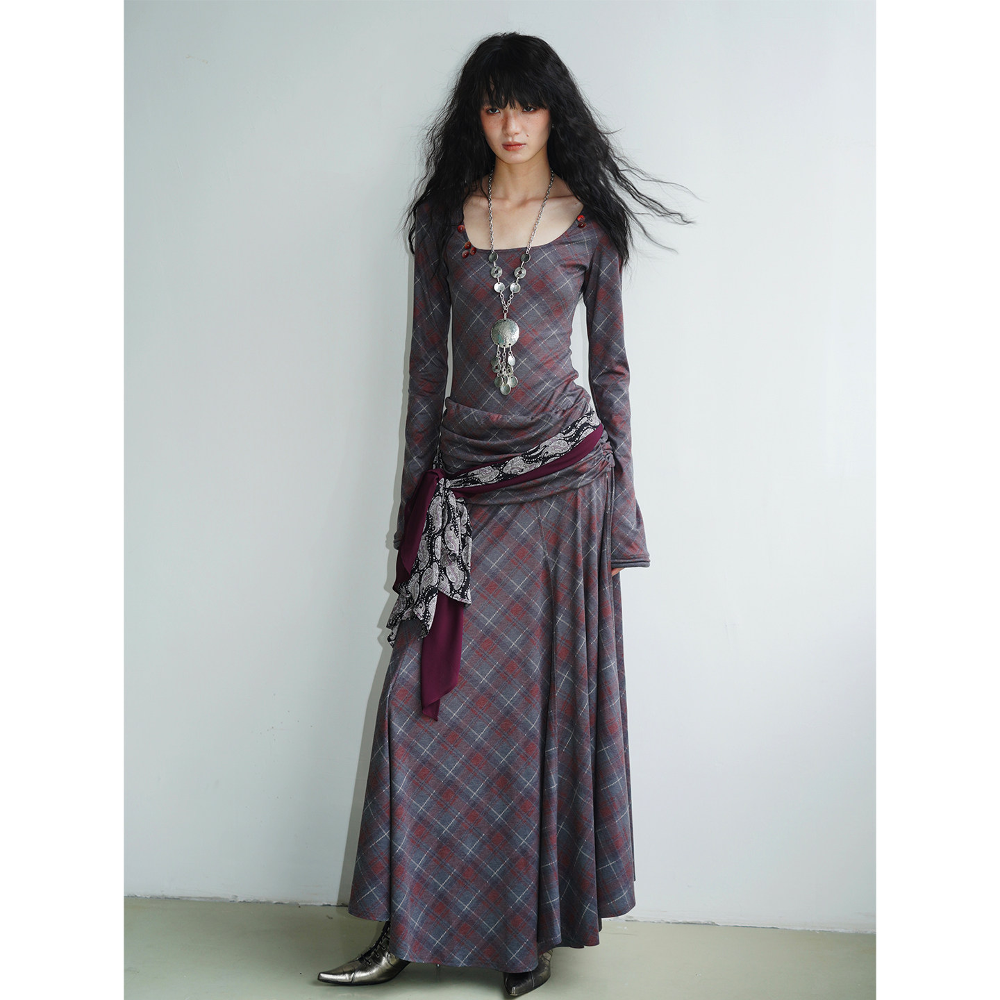 坏品味西部 复古莱赛尔天丝格纹不规则修身长款连衣裙秋冬