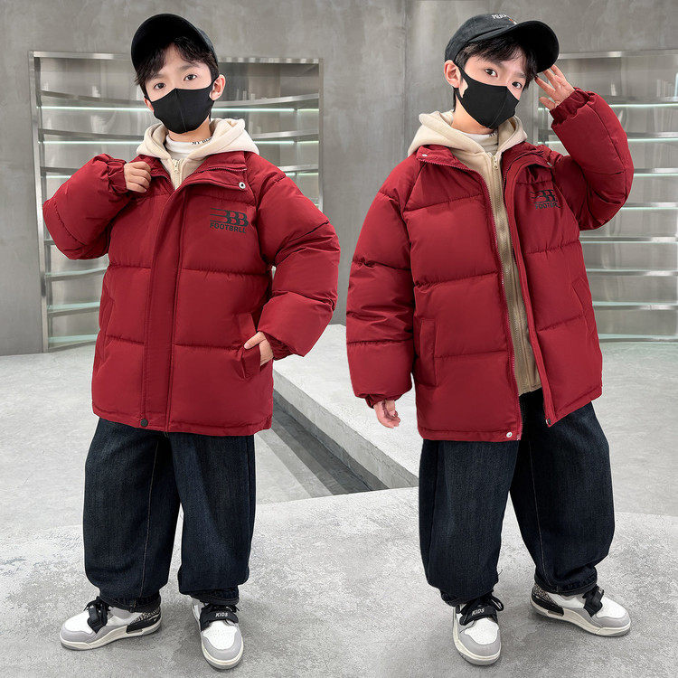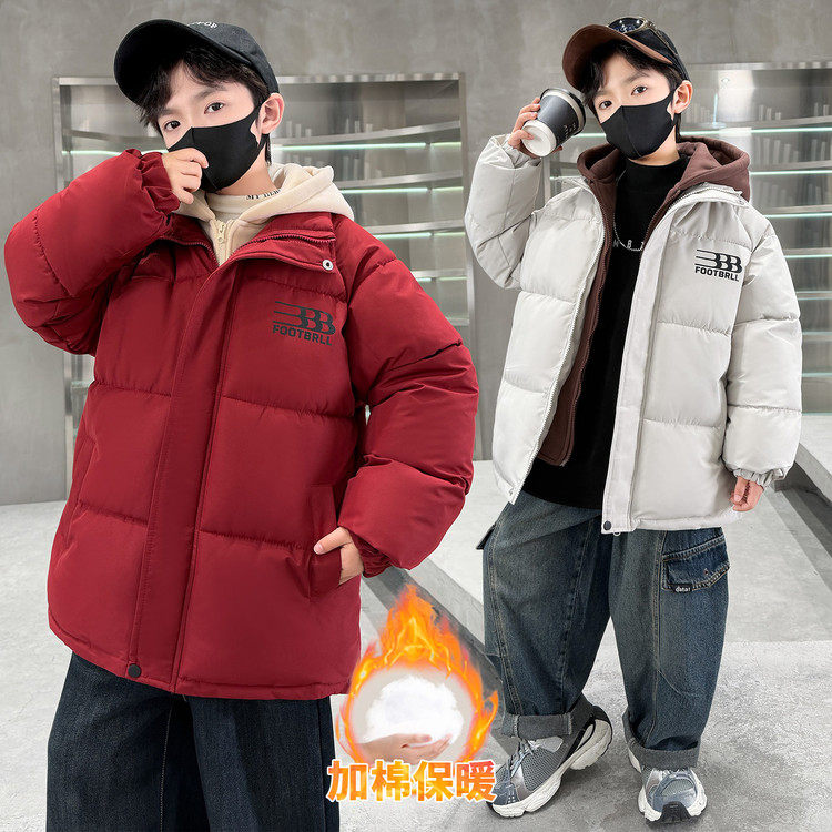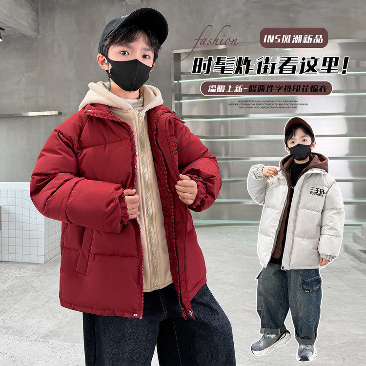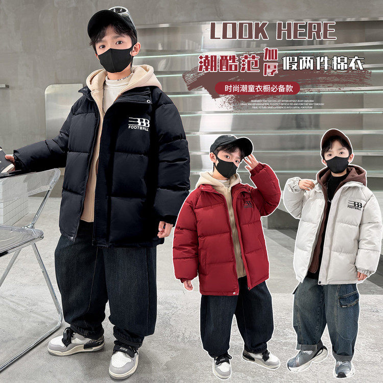 男童棉服外套冬装2025新款中大童加厚羽绒棉衣初中生假两件棉袄潮