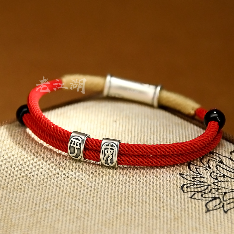 999纯银金榜题名手链男女推拉红绳考研上岸手串中高考学生送礼物