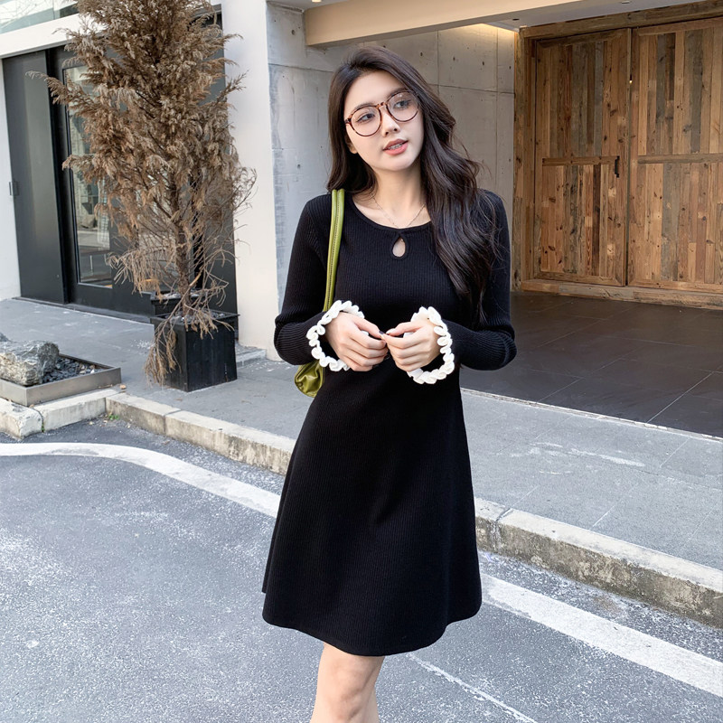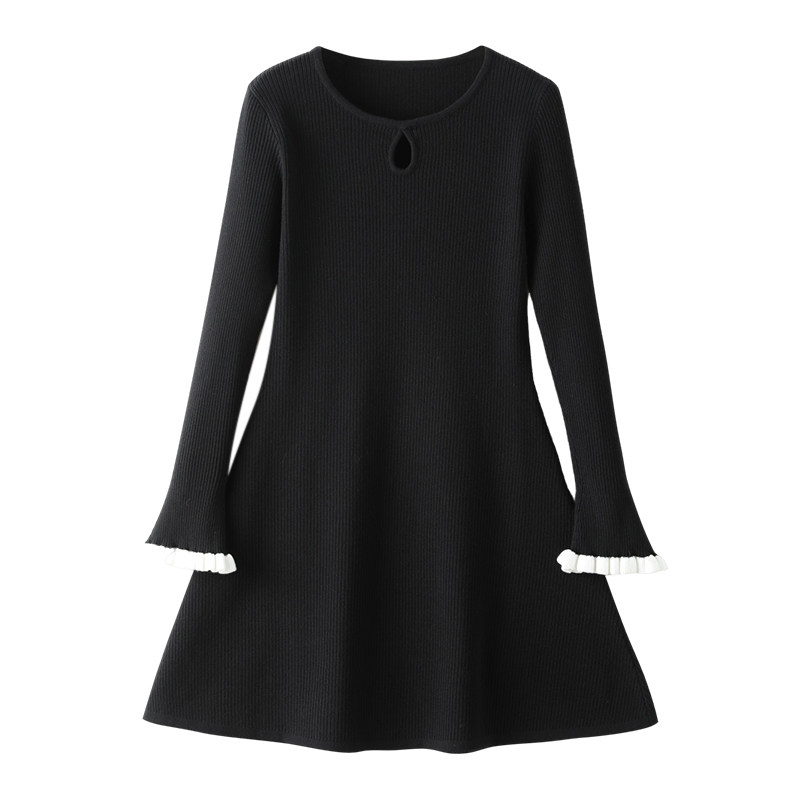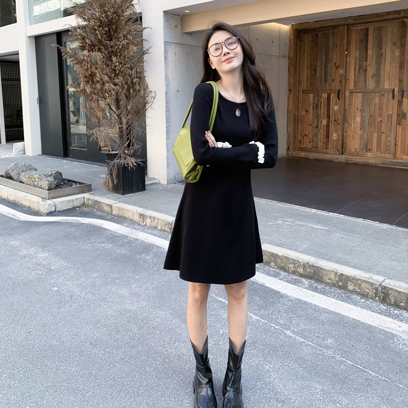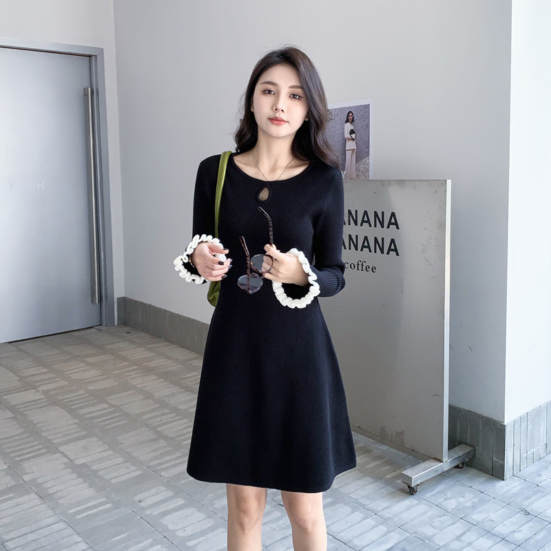 打底毛衣中长款内搭针织连衣裙小个子长袖修身a字裙子长袖毛衣裙