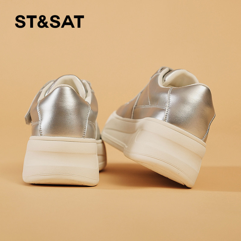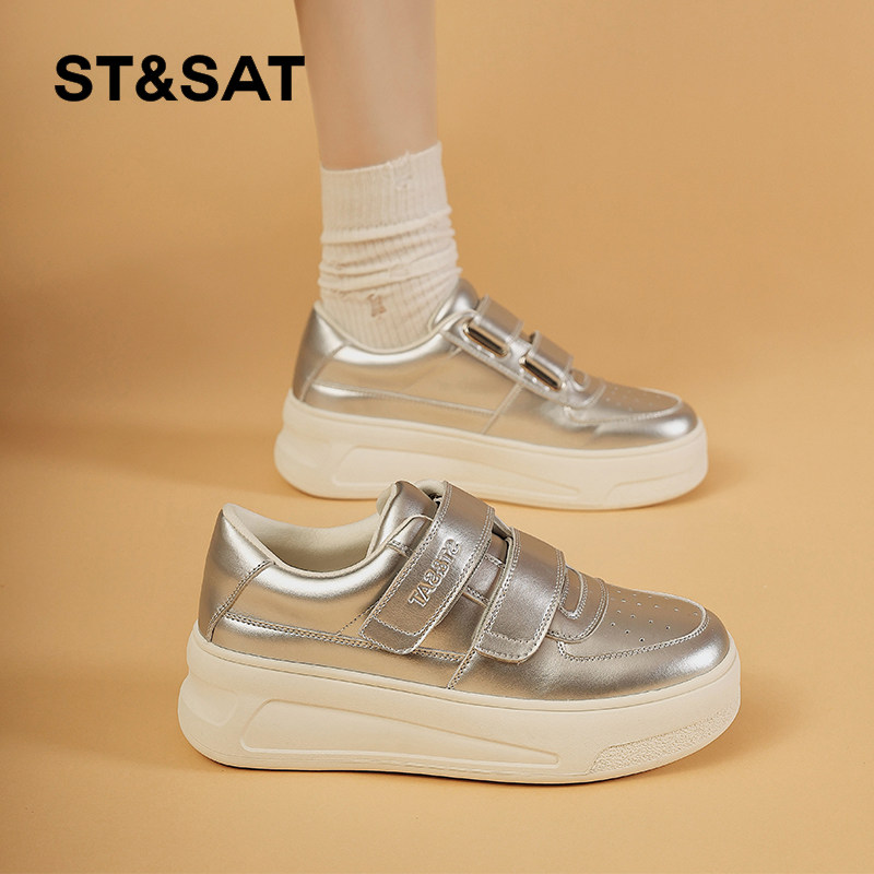 星期六小白鞋女款2025春季新款5CM厚底增高板鞋魔术贴运动休闲鞋