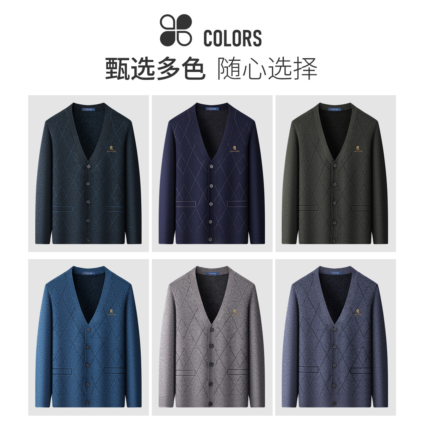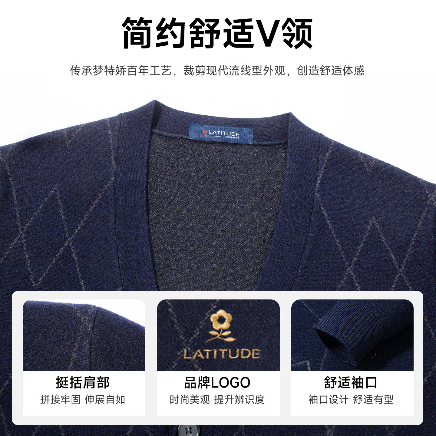 梦特娇男装秋冬季中老年针织开衫纽扣款100%绵羊毛男士毛衣外套Z