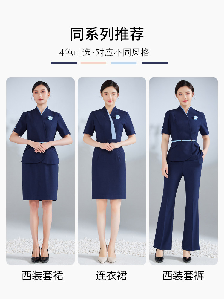 空姐范中式旗袍职业套装连衣裙女秋酒店前台接待美容院医美工作服