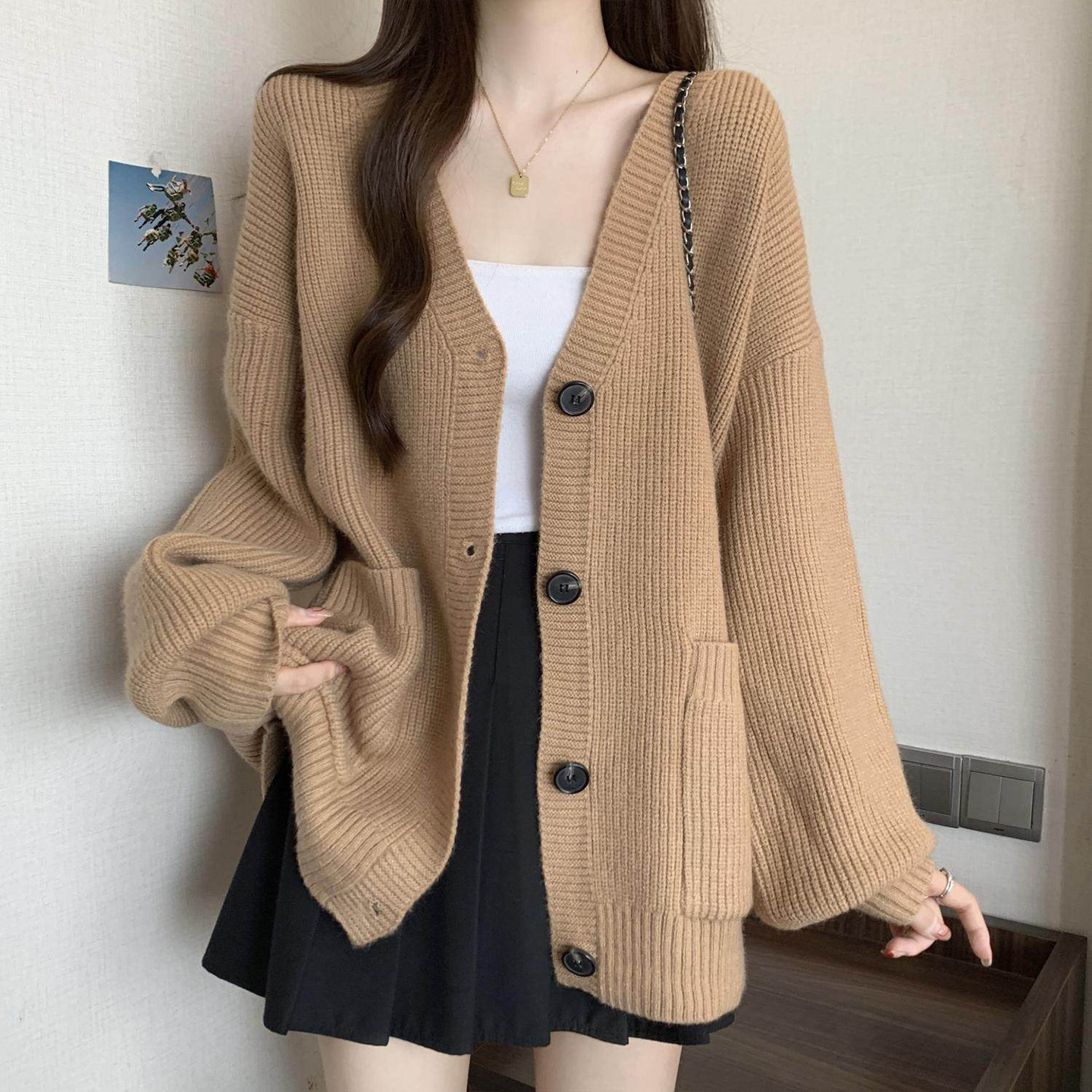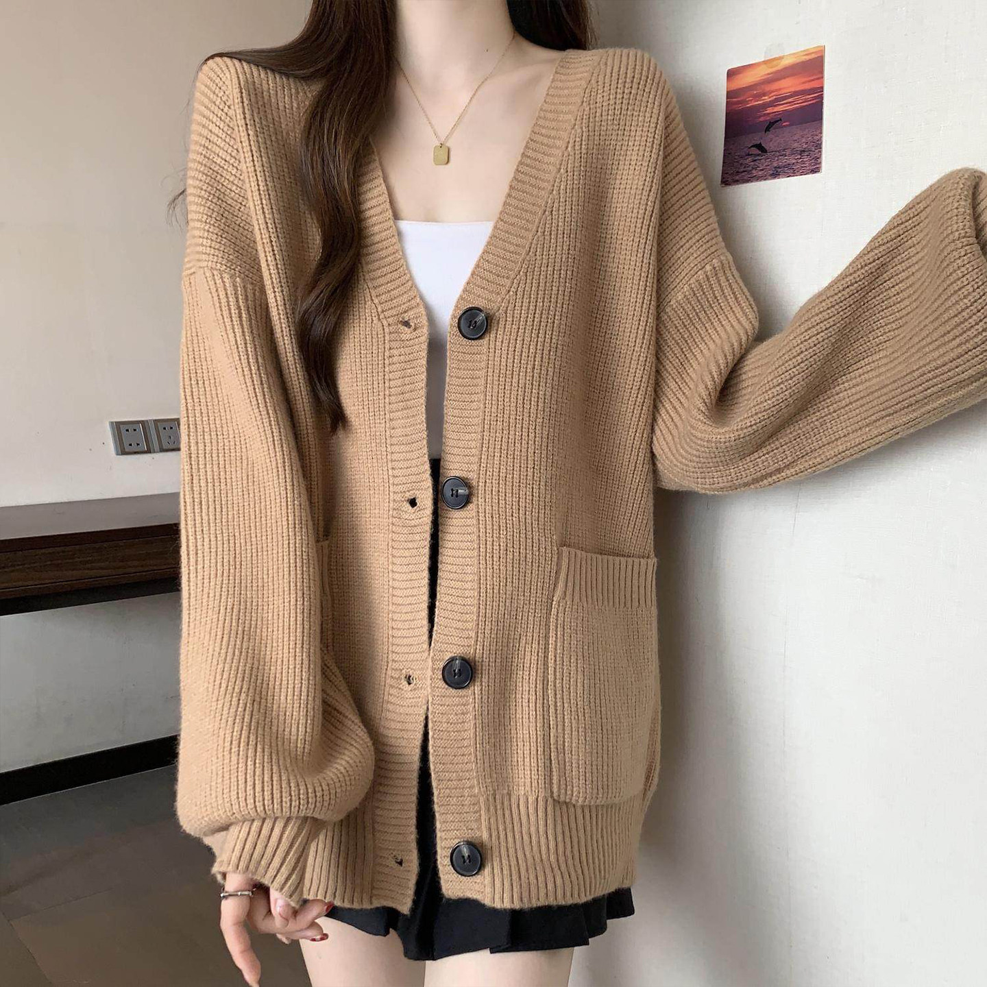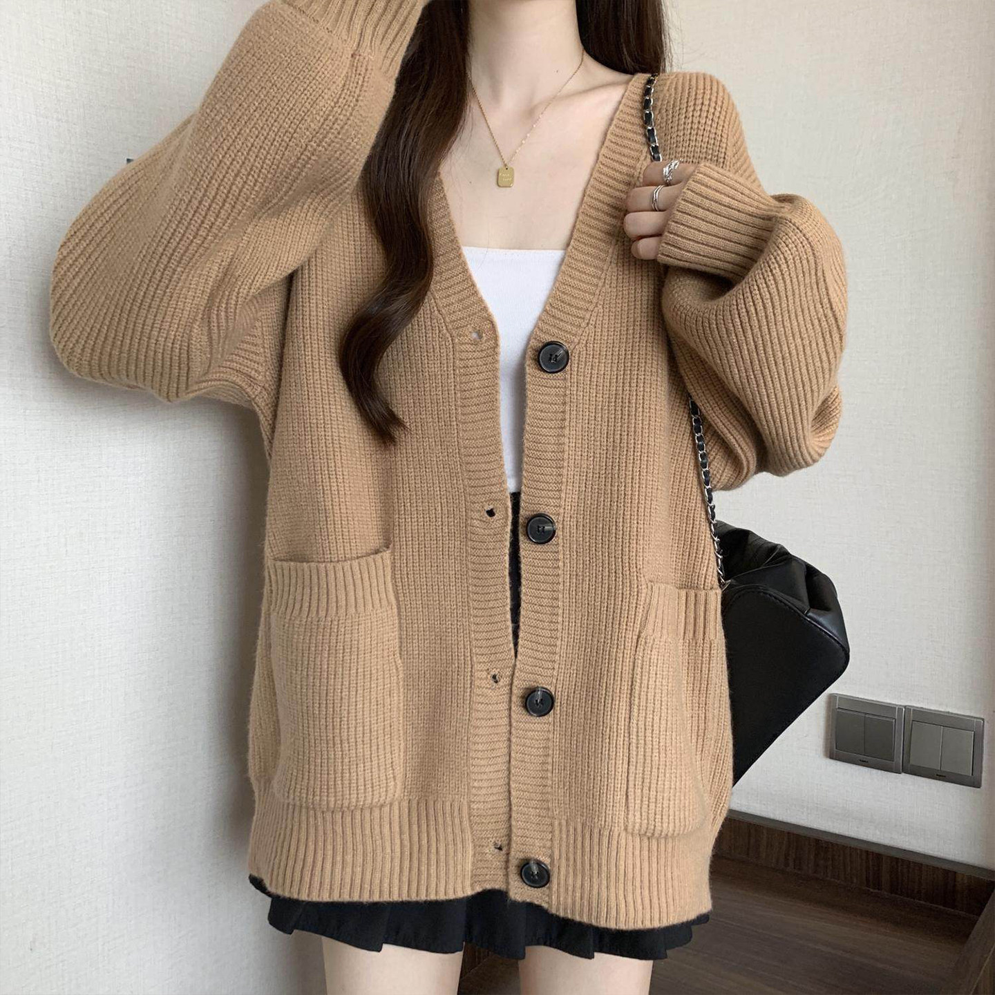 大码高级感针织开衫毛衣外套女秋冬季新款复古日系慵懒风上衣胖mm
