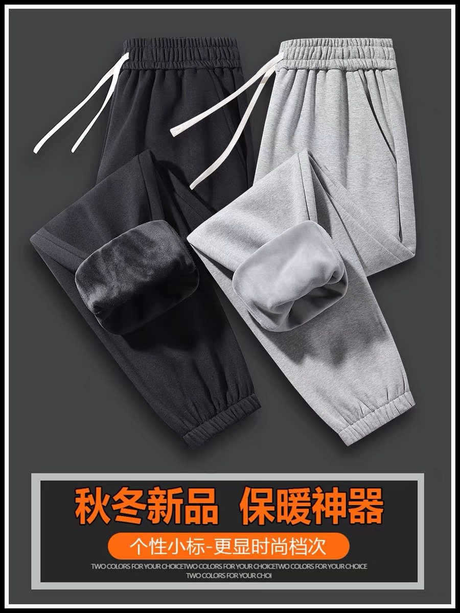 秋季新款卫裤子男款休闲长裤冬季宽松潮流加绒加厚纯棉束脚运动裤