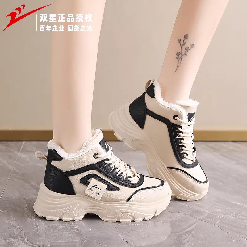双星真皮雪地靴女2025新款冬季女款保暖高帮棉鞋运动休闲百搭棉靴