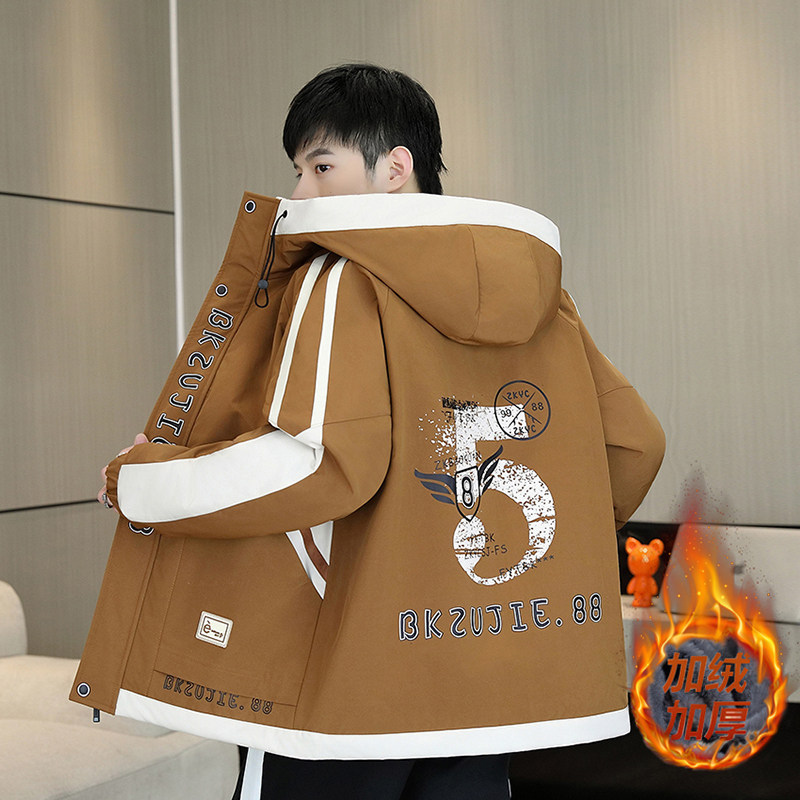 秋冬款加绒厚外套12岁男孩13青少年学生14加厚衣服15大童羽绒服潮