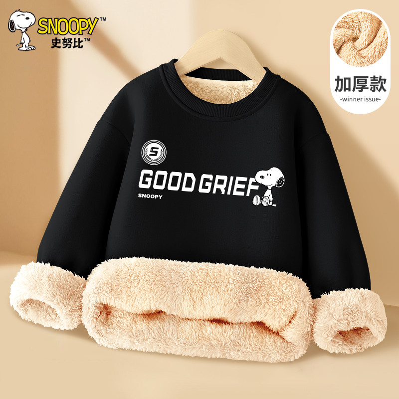 史努比儿童卫衣2025新款秋冬男童加厚羊羔绒上衣加绒童装衣服冬装