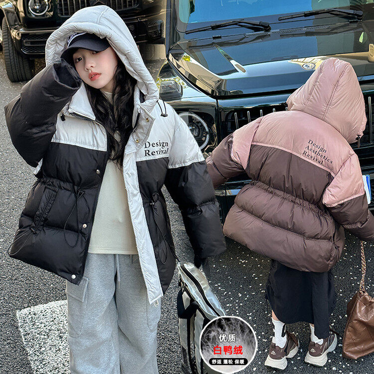 女童羽绒服冬季短款2024新款女孩大童加厚白鸭绒外套初中生冬装潮
