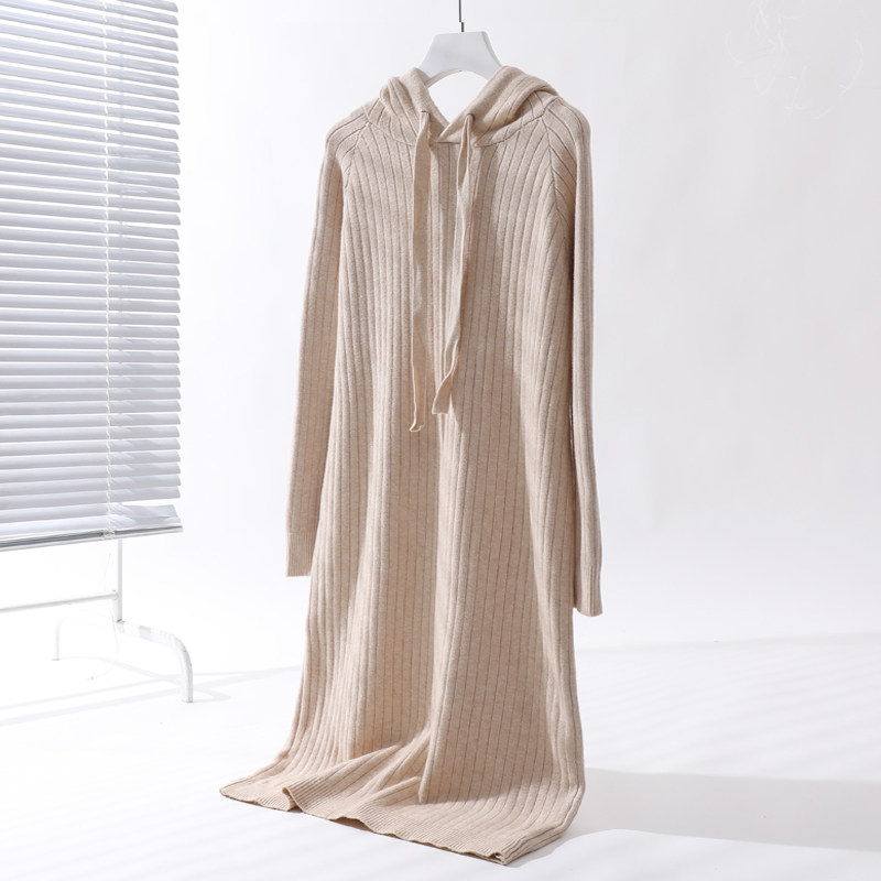 单装原创大码女装毛织连衣裙女秋冬胖mm200斤宽松连帽长款毛衣裙