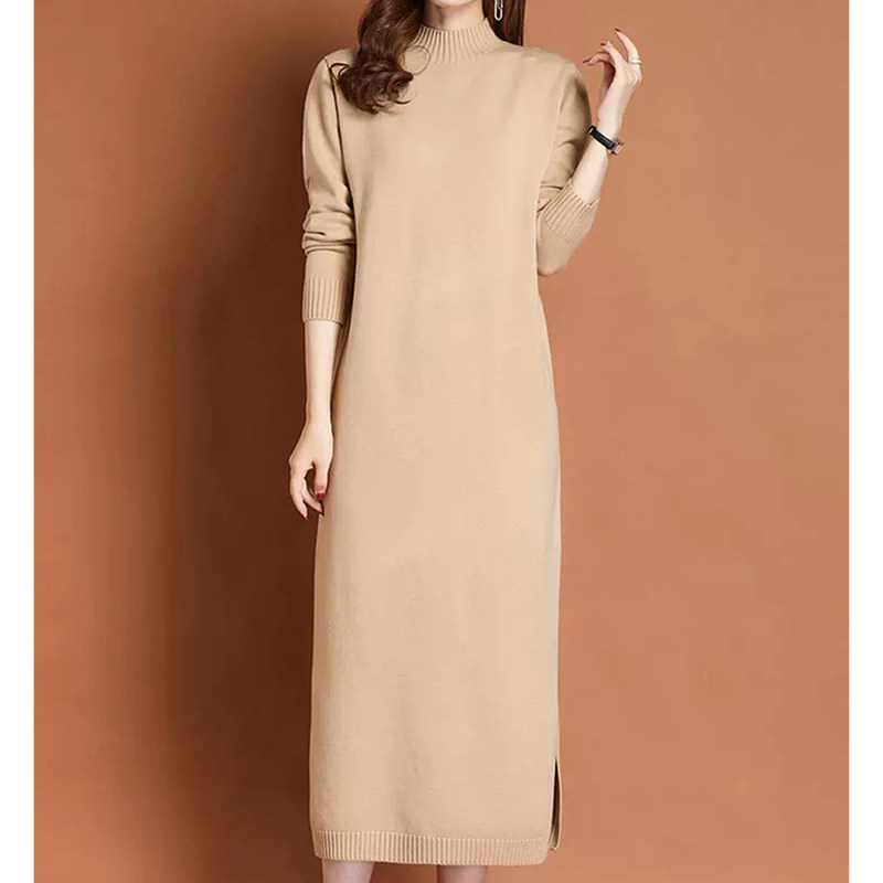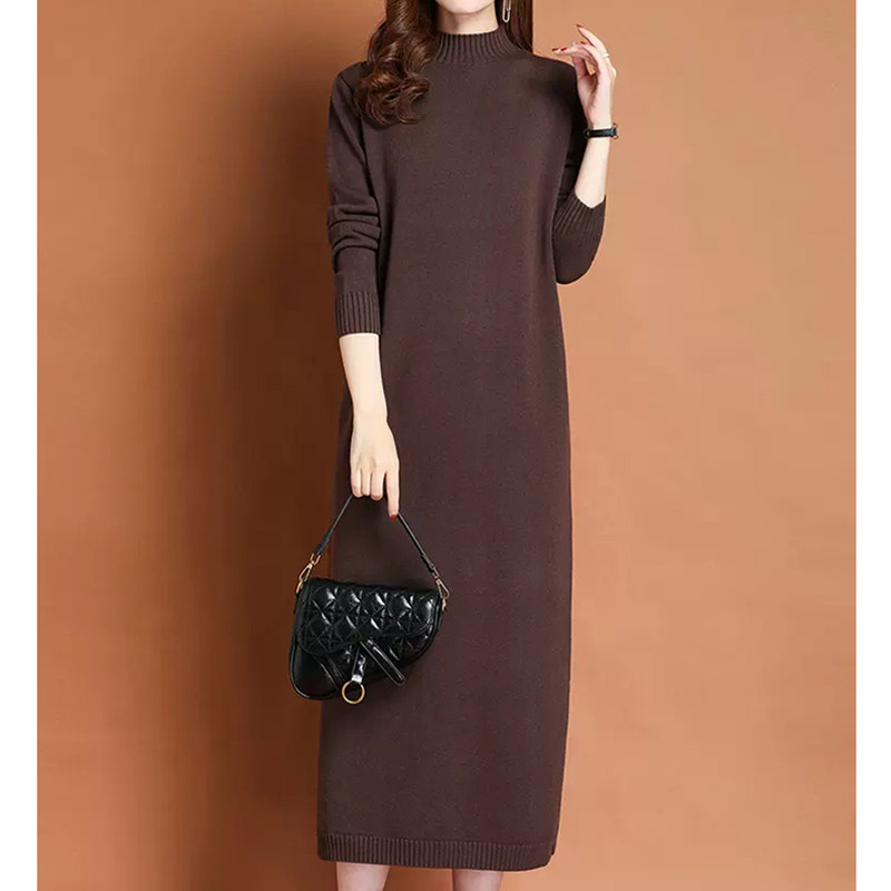 女士长款毛衣秋冬新款配大衣针织羊毛衫加肥大码连衣裙过膝打底衫