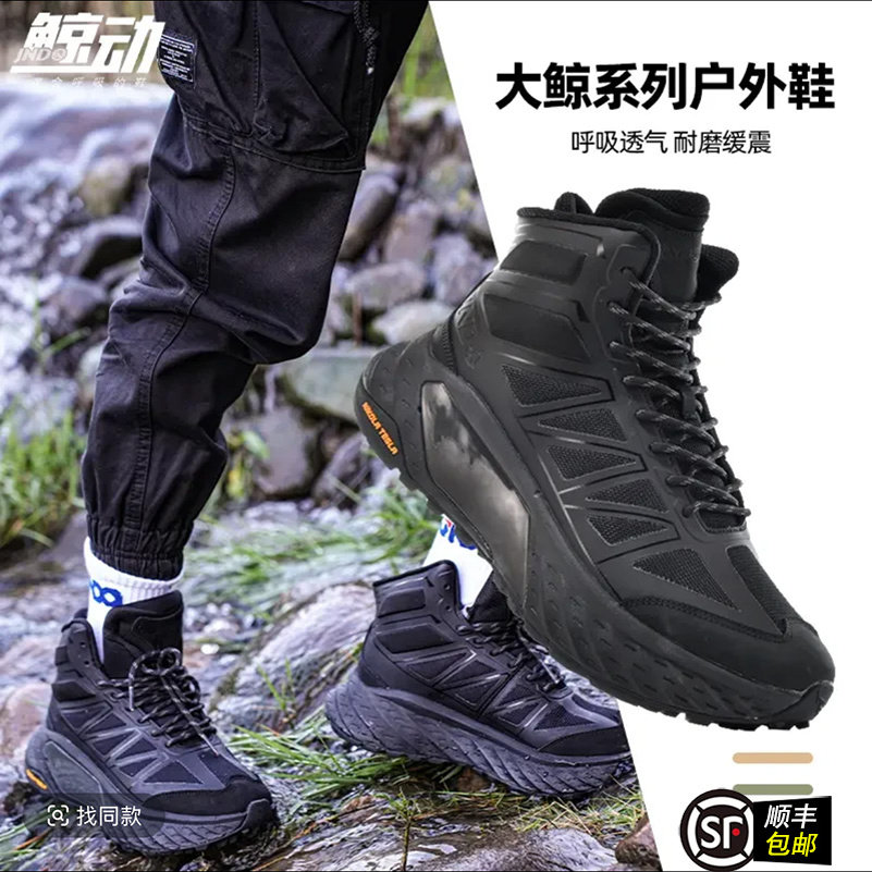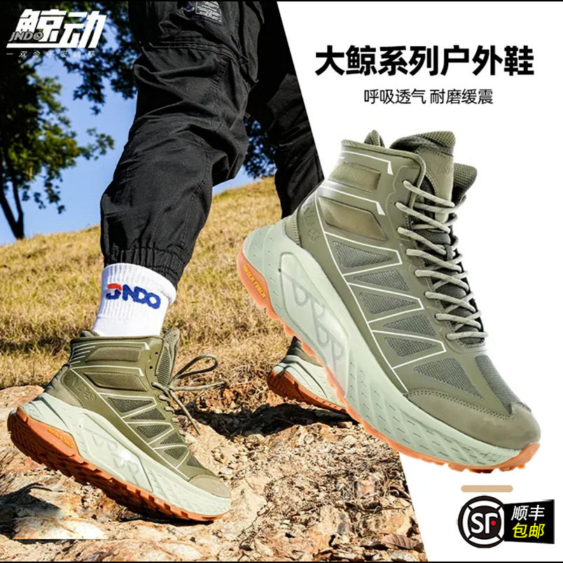 鲸动高帮户外登山鞋男防滑耐磨运动呼吸跑鞋爬山越野沙漠徒步鞋女