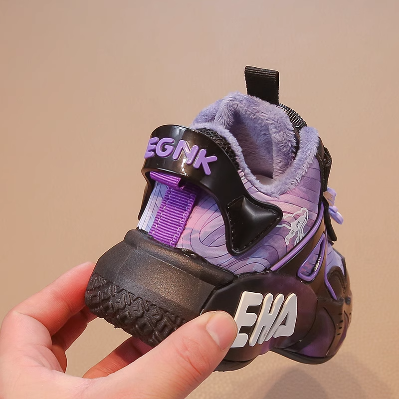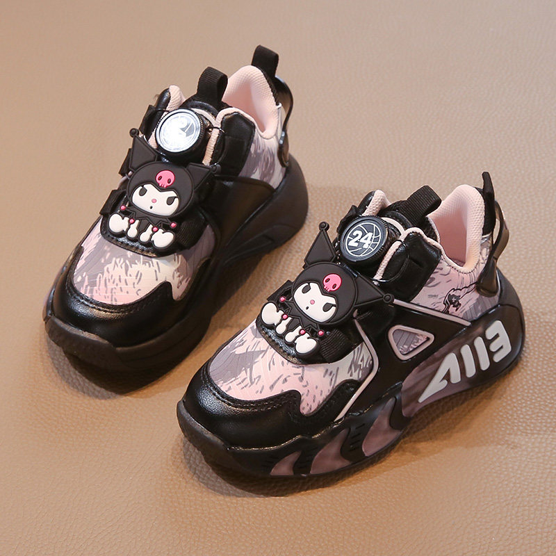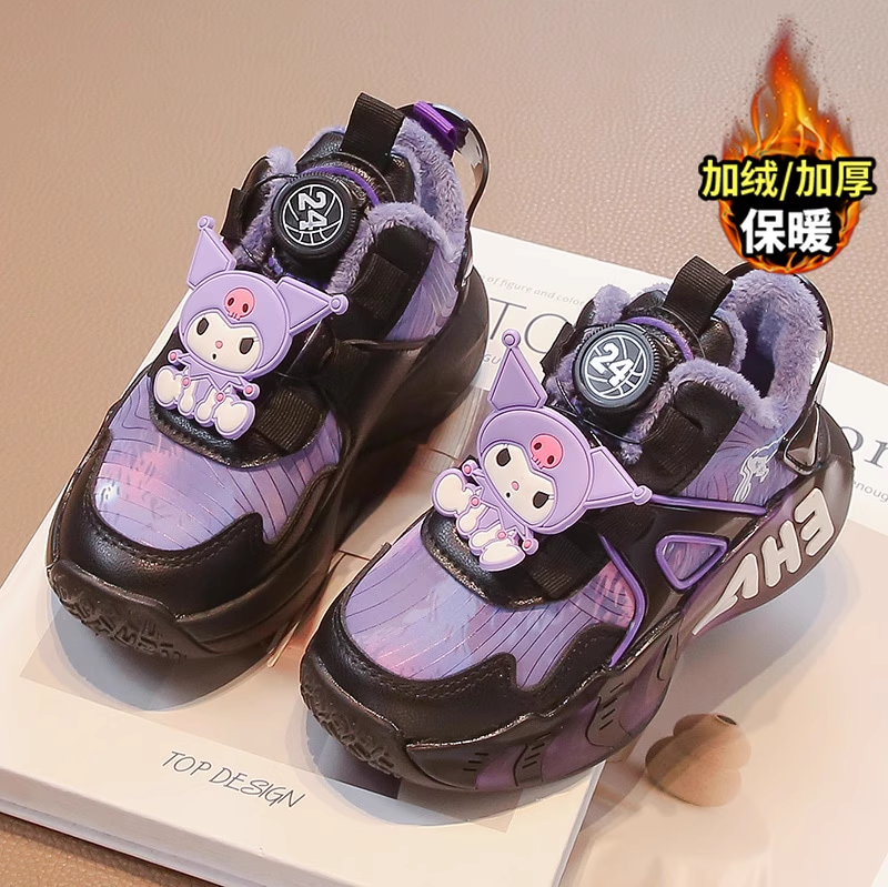 库洛米女童旋转纽扣加绒保暖棉鞋2026新款冬天防滑软底时尚运动鞋