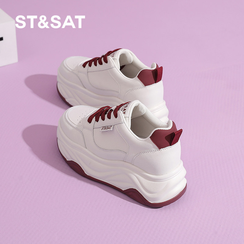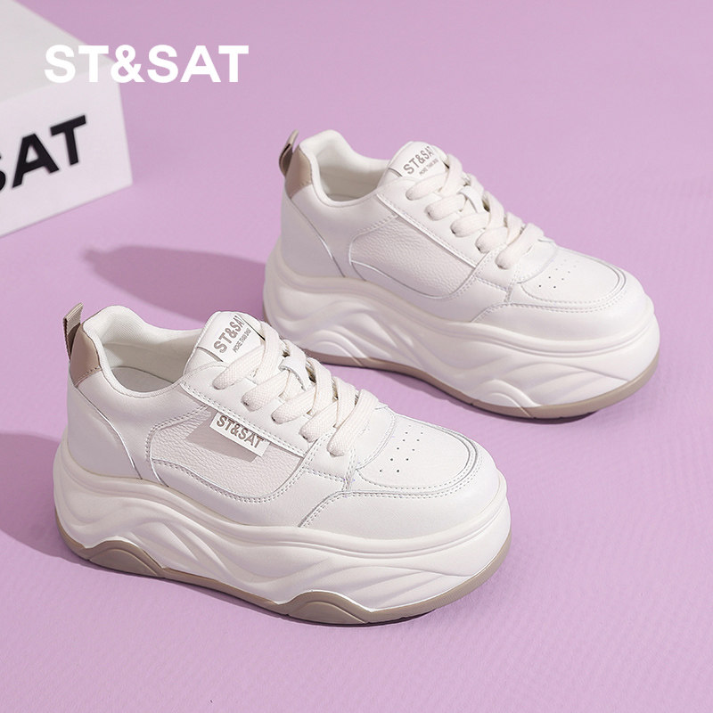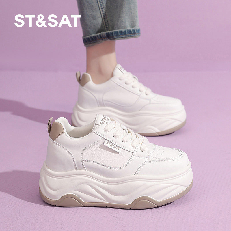 星期六厚底板鞋女2025春秋新款8CM小个子内增高鞋舒适百搭小白鞋