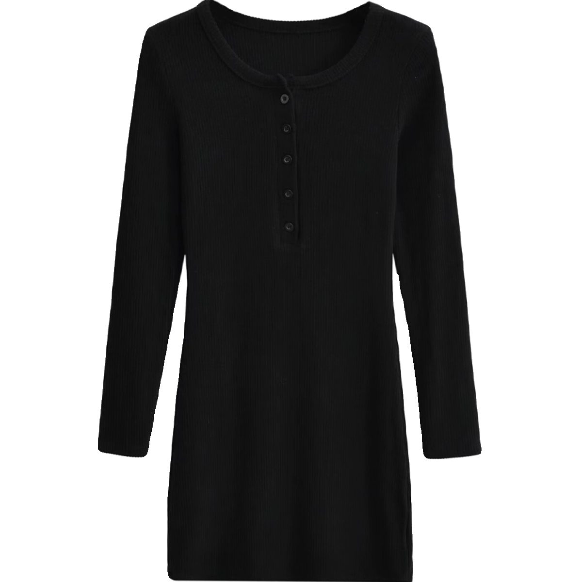 甜辣少女黑色百搭收腰长袖连衣裙女秋冬修身显瘦小个子打底包臀裙