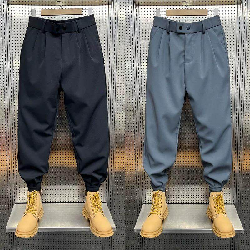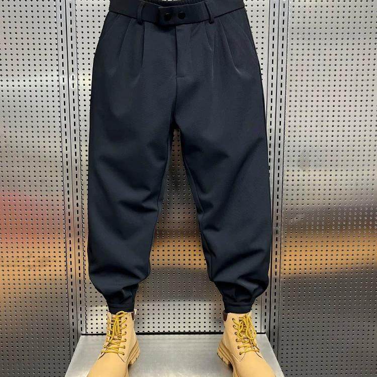 秋冬加绒加厚裤子男款青年宽松免烫垂感直筒休闲裤潮流小脚西裤