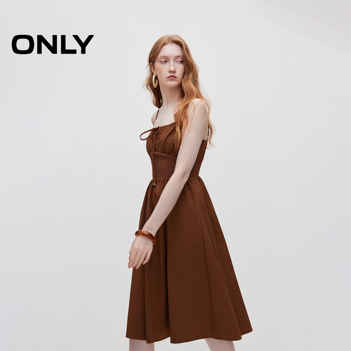 绫致ONLY秋冬度假风收腰A字中长款吊带连衣裙女时尚潮
