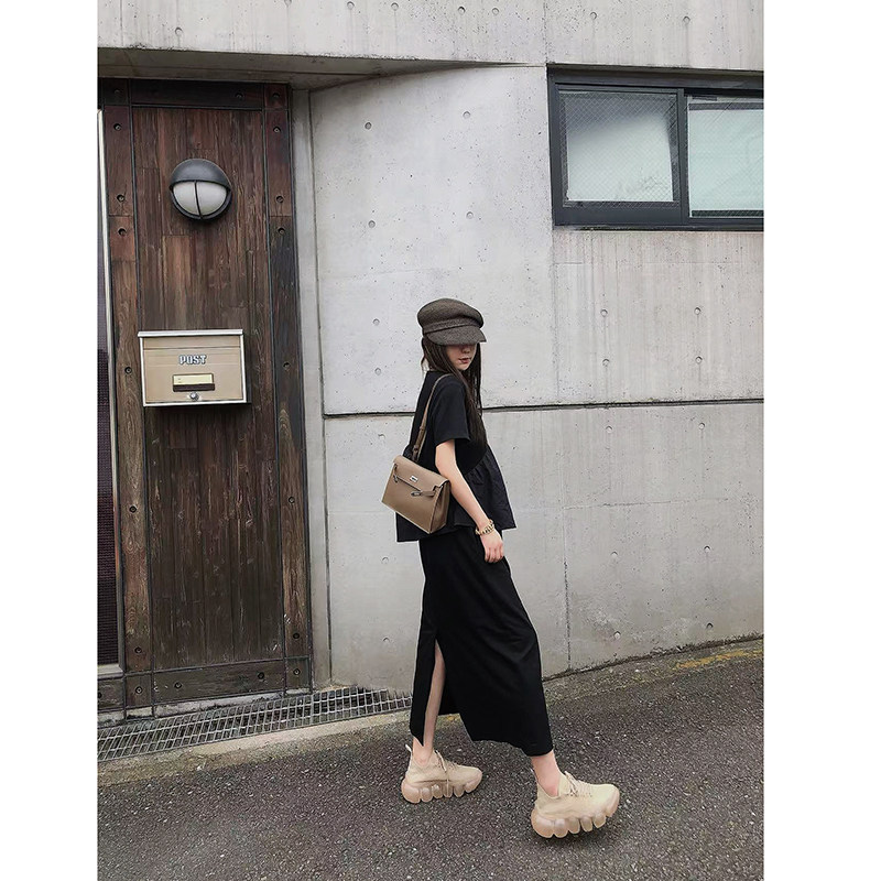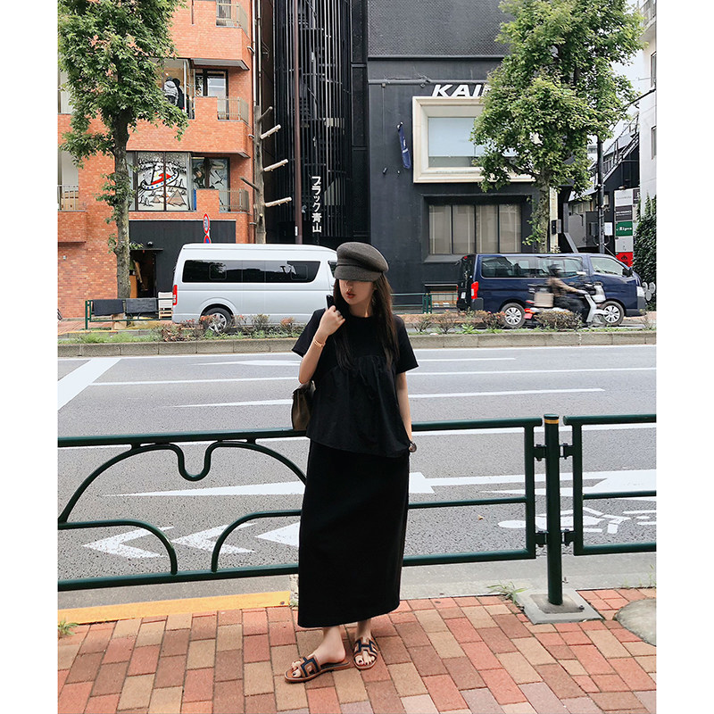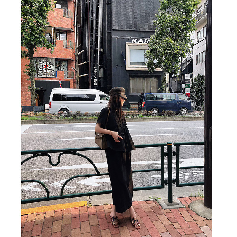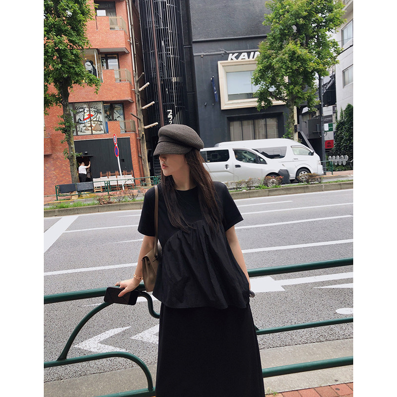 LANGBOOM 与夏逐舞 日系高美商气质通勤假两件黑色连衣裙长裙