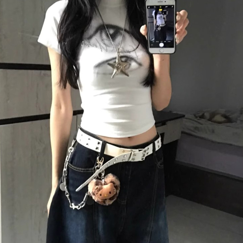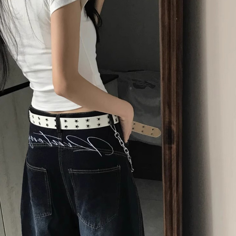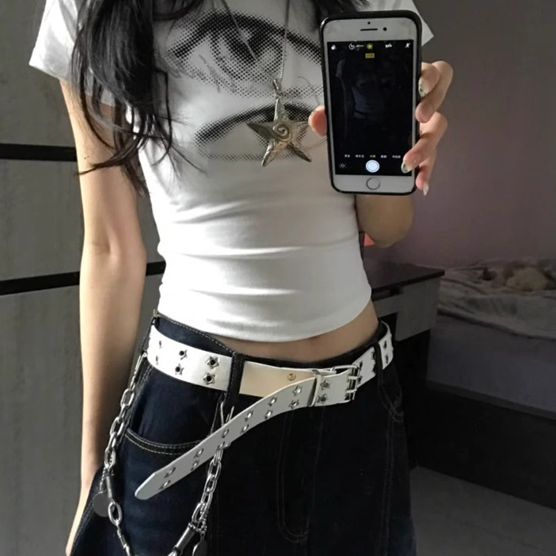 白色腰带女2026年星星镂空双排扣皮带古早y2k辣妹牛仔裤ins风穿搭